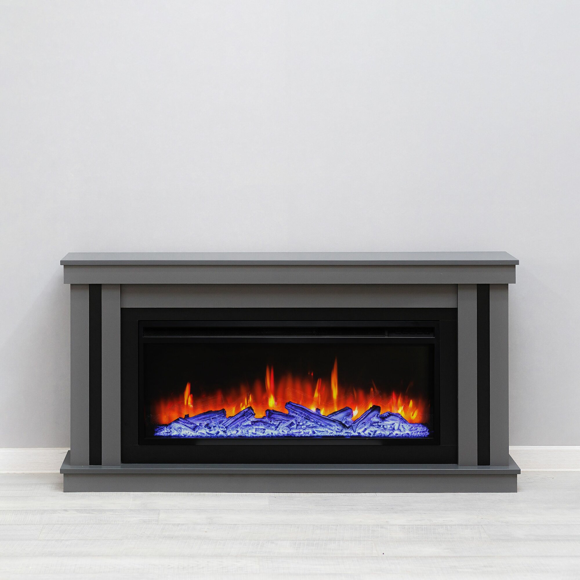 Электрический камин ELEKAM CASCADE серый с очагом Vegas с обогревом, пультом управления и потрескиванием дров