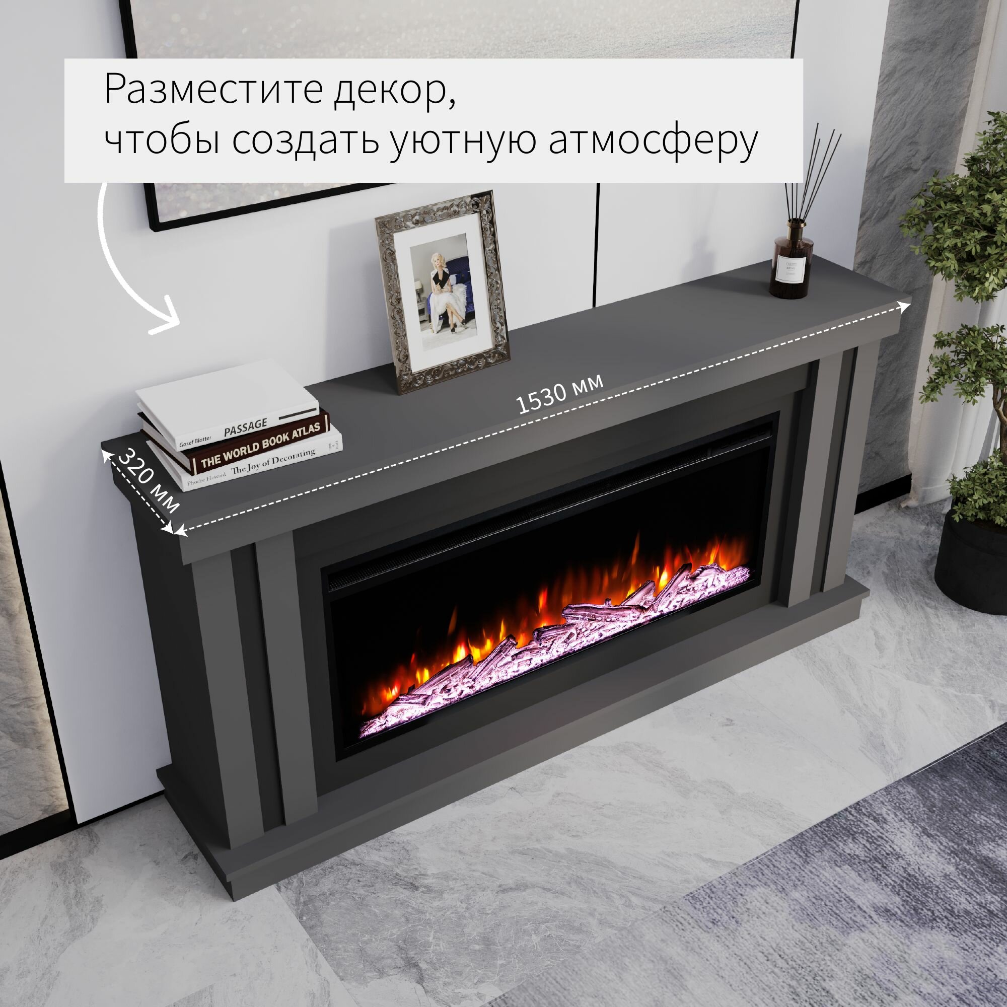 Камин электрический ELEKAM Bolton тёмно-серый графит с очагом Vegas с обогревом и потрескиванием дров (Электрокамин)