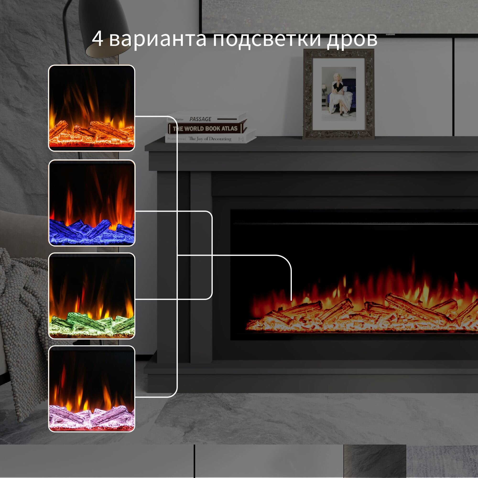Электрический камин ELEKAM VIOLA напольный с электроочагом пультом обогревом и звуком потрескивания дров