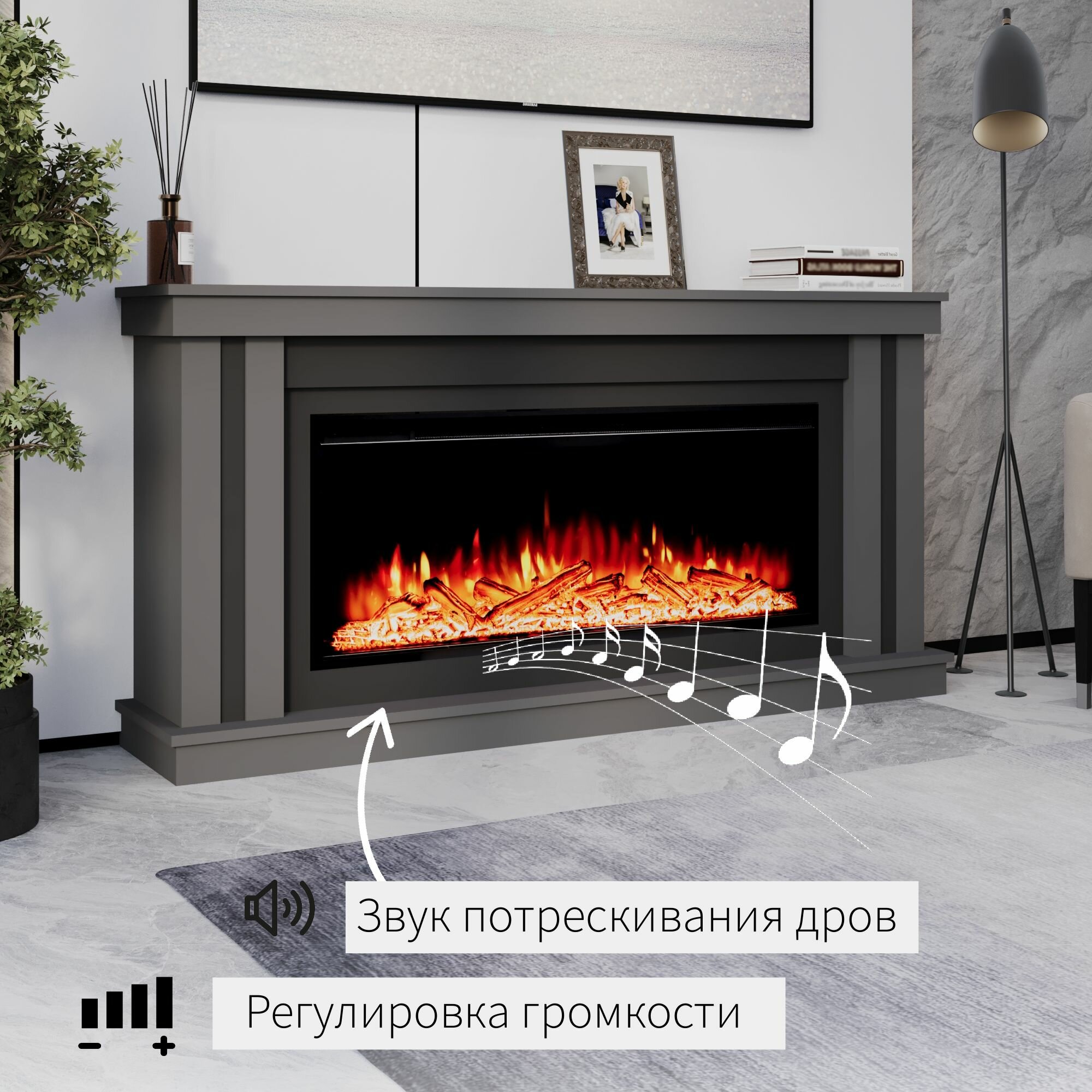 Электрический камин ELEKAM CASCADE серый графит с очагом, обогревом и звуком потрескивания дров