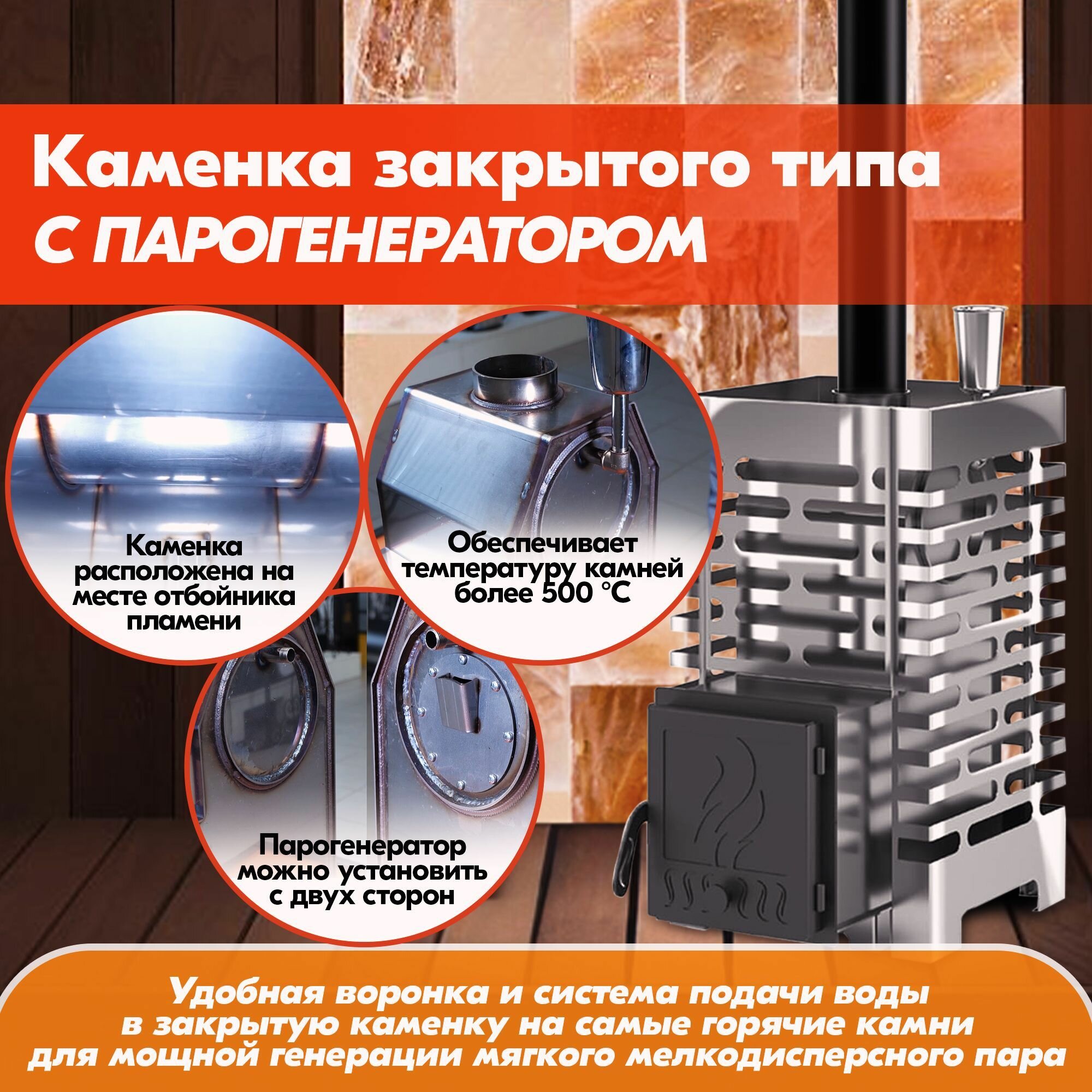 Печь для бани ASTON 20 INOX дровяная с закрытой каменкой