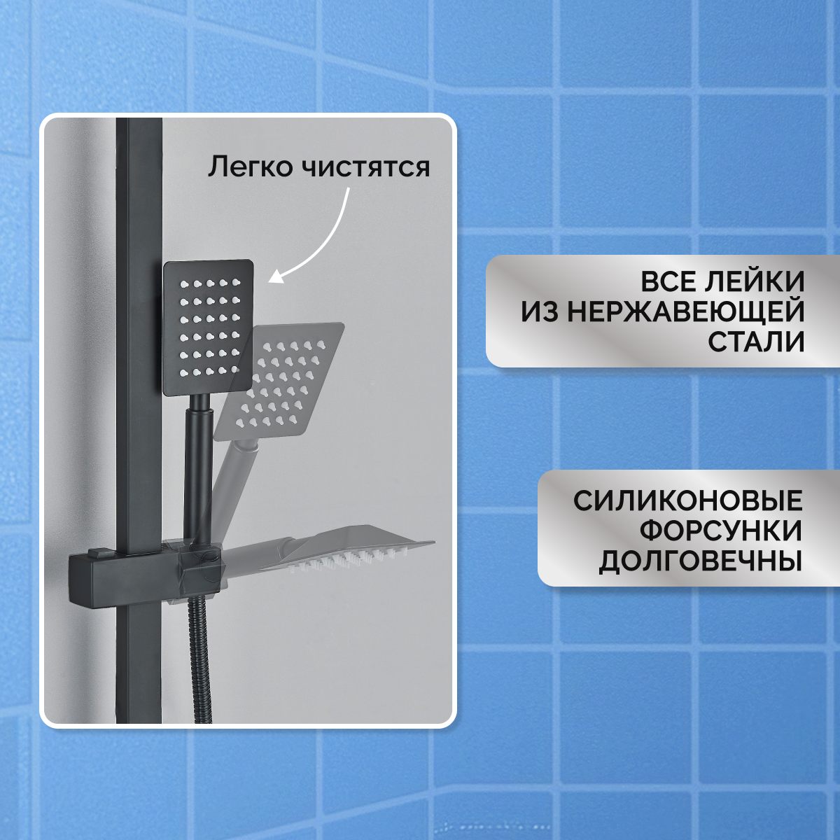 Душевая система Dhome с тропическим душем 3 в 1, цвет черный матовый интересное: