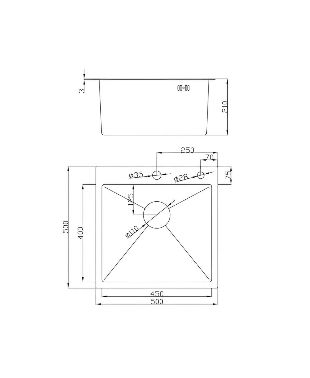 Мойка раковина для кухни из нержавеющей стали врезная 50х50 см. Hoffger HFG-5050TB черный Графит квадратная декор