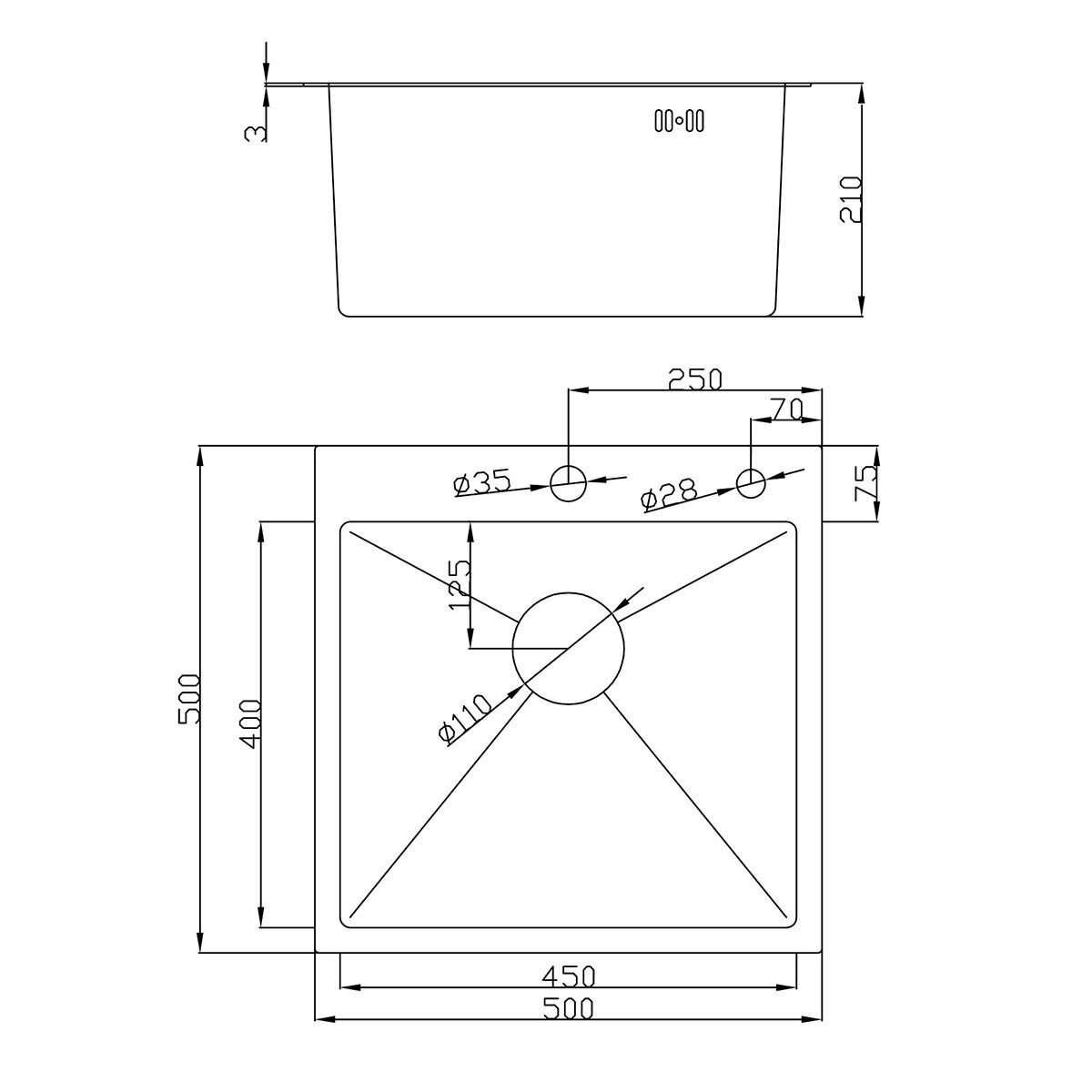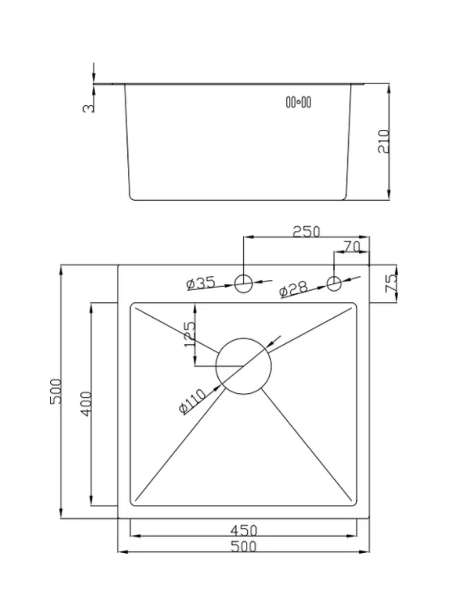 | Форма мойки | квадратная |