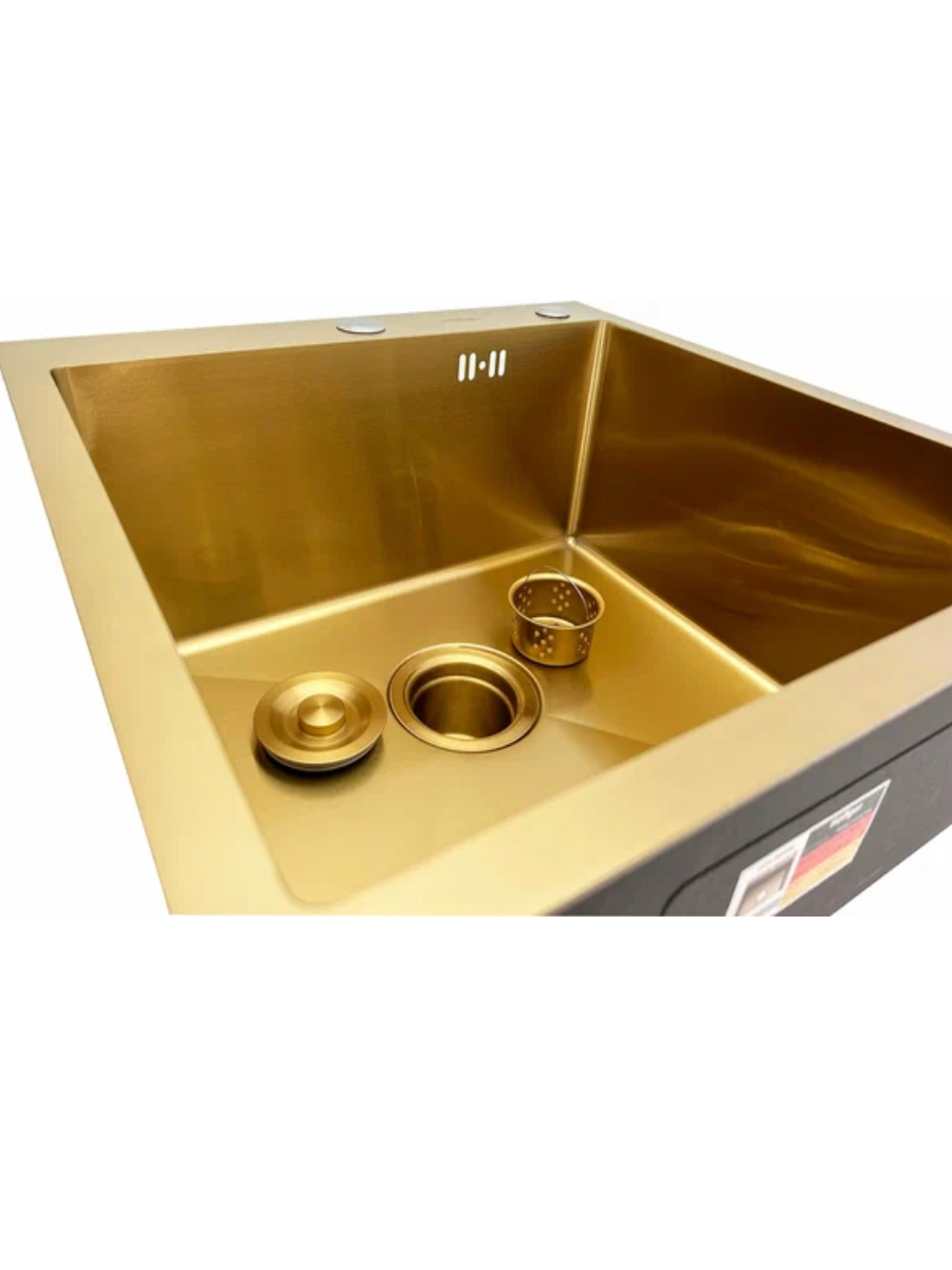 Кухонная мойка Hoffger 5050 Gold (Золото), нержавеющая сталь PVD покрытие, 50x50см, врезной монтаж