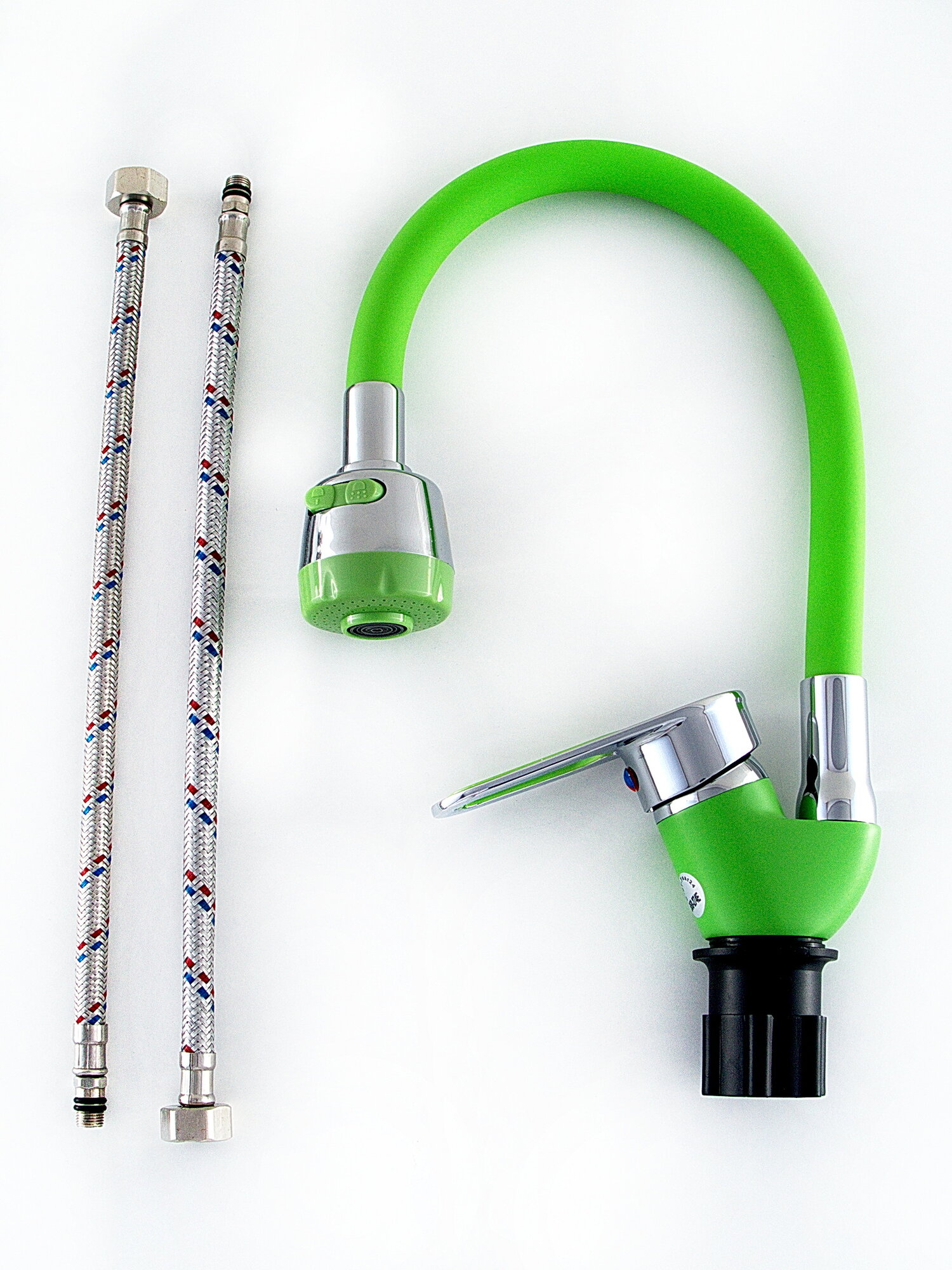 Купить Смеситель для кухни Эверест B58-274E с гибким изливом, картридж 35 мм, зелёный, крепление гайка