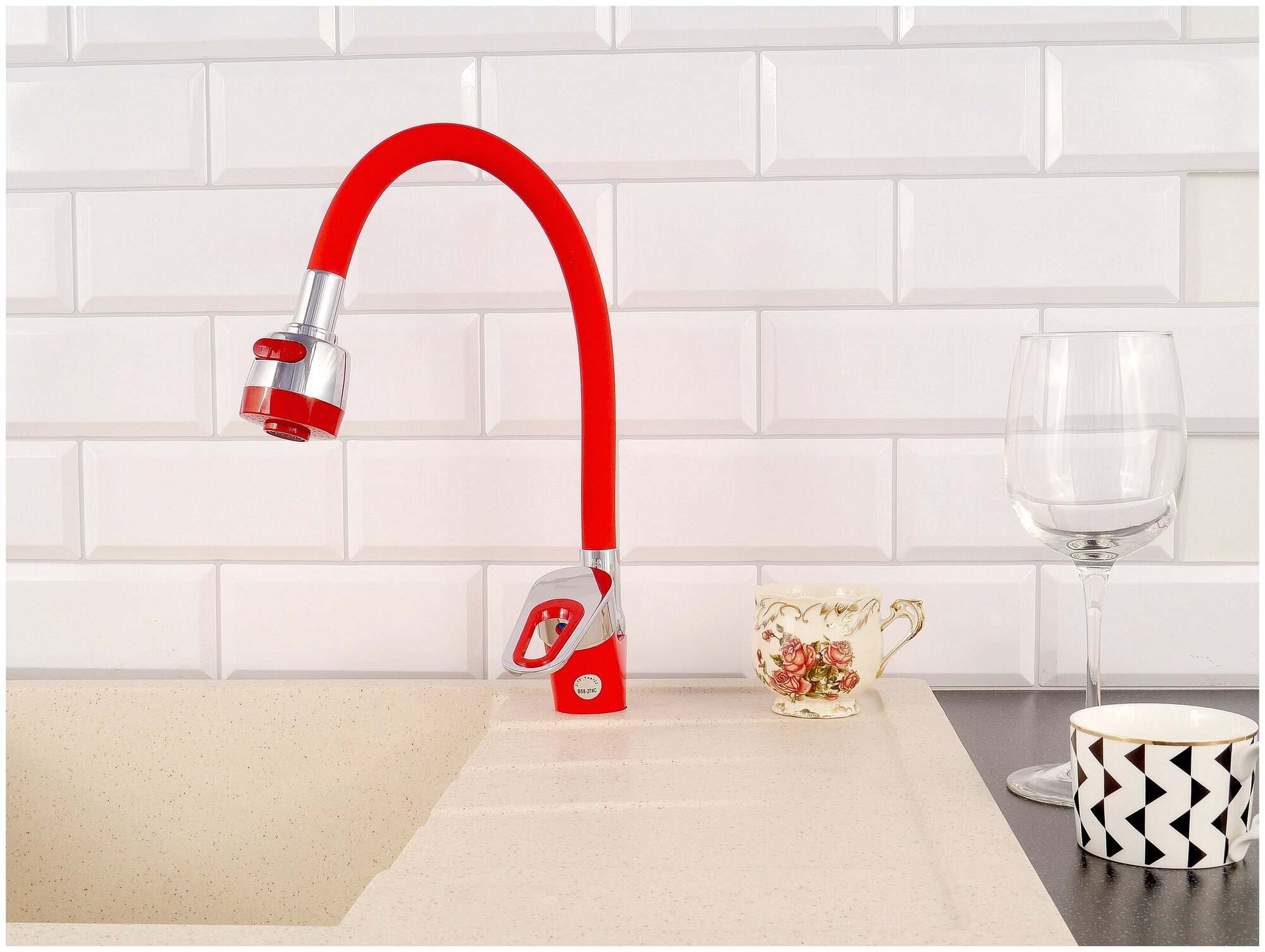 Смеситель для кухни Эверест B58-274C с гибким изливом, картридж 35 мм, красный, крепление гайка
