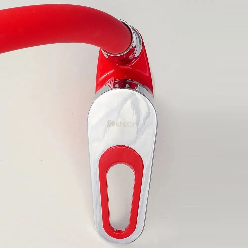 Купить Смеситель для кухни Эверест B58-274C, гибкий излив, цинковый сплав, красный