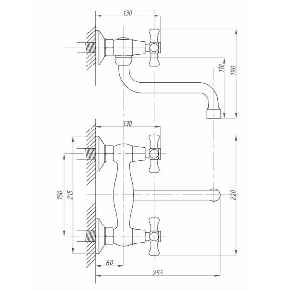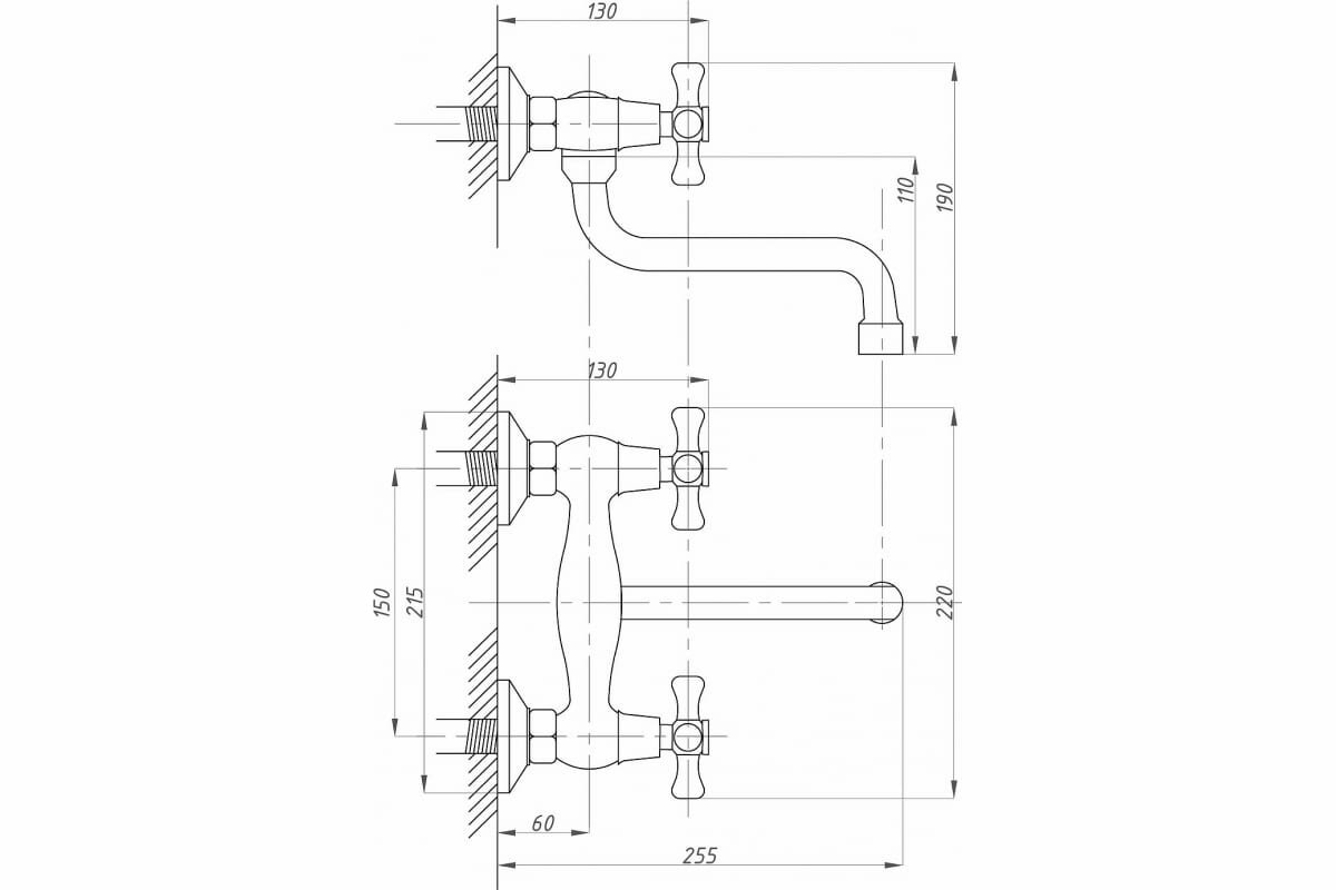 FAUZT Смеситель для кухни настенный тип см-мдрна FZs-490-07