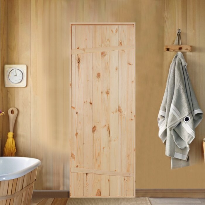 Дверной блок для бани, 180×70см, из сосны, на клиньях, массив, "Добропаровъ"