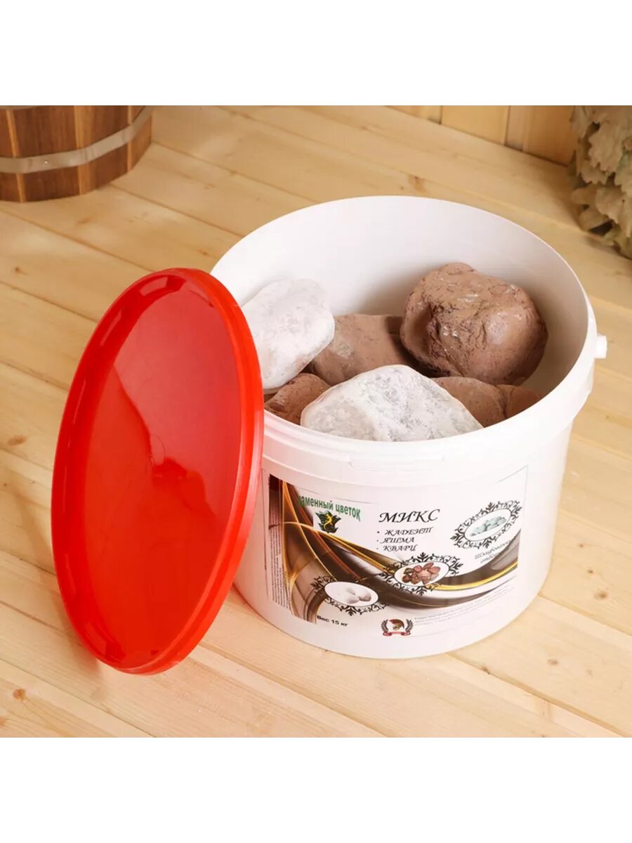 Камень для бани "Смесь" жадеит, яшма, кварц, ведро 15кг 2742382