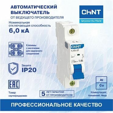 Выключатель автоматический модульный 1п C 6А 6кА NXB-63 (R) CHINT 814012