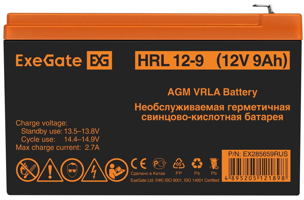 Купить EXEGATE батареи EX285659RUS Аккумуляторная батарея HRL 12-9 12V 9Ah 1234W, клеммы F2