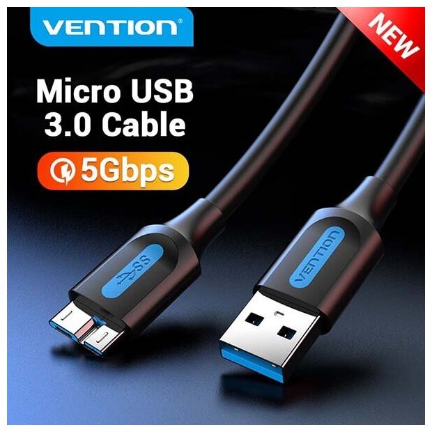 Кабель micro USB 3.0 AM (папа) / micro B (папа) длина 1 метр Vention переходник для внешнего жесткого диска, арт. COPBF