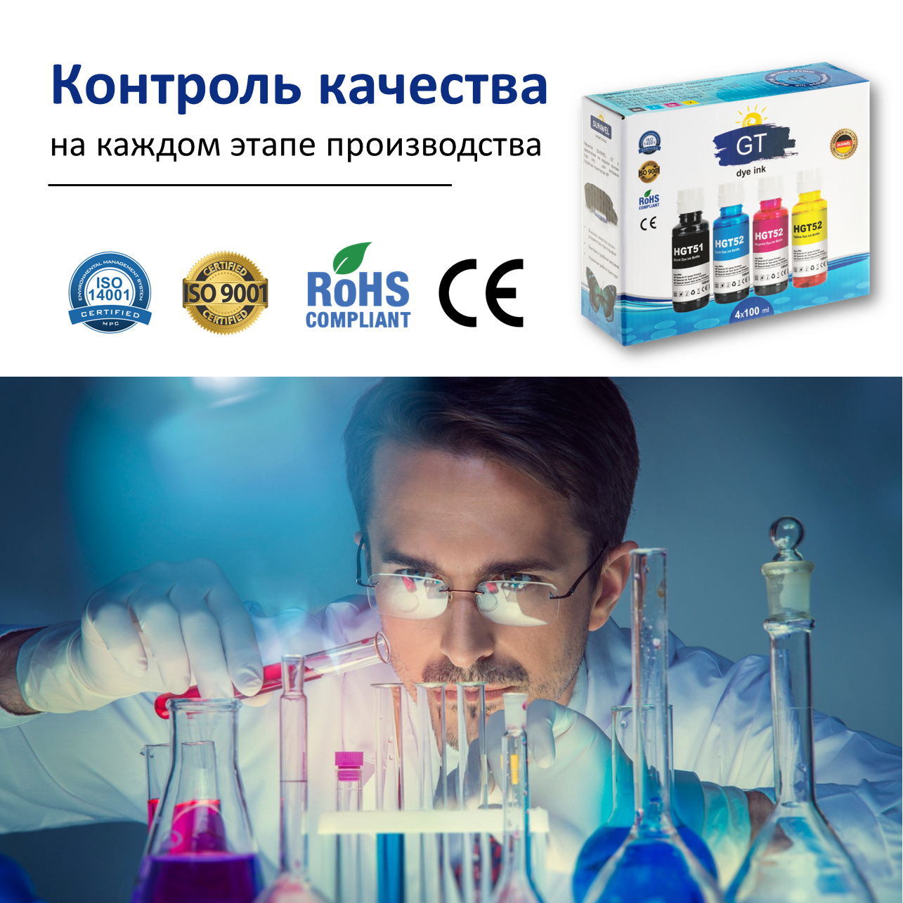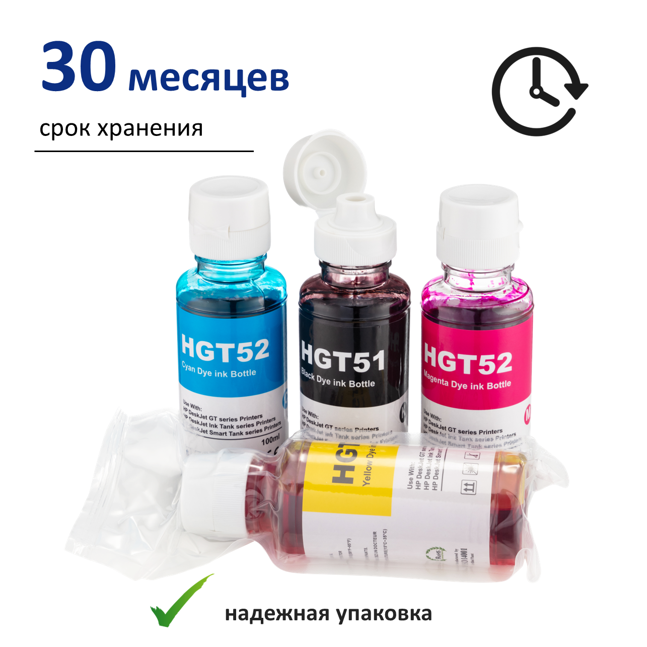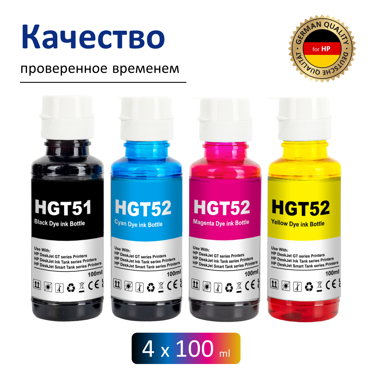 Чернила для принтеров HP GT51 GT52, набор 4х100 мл. Smart Tank, Ink Tank, DeskJet