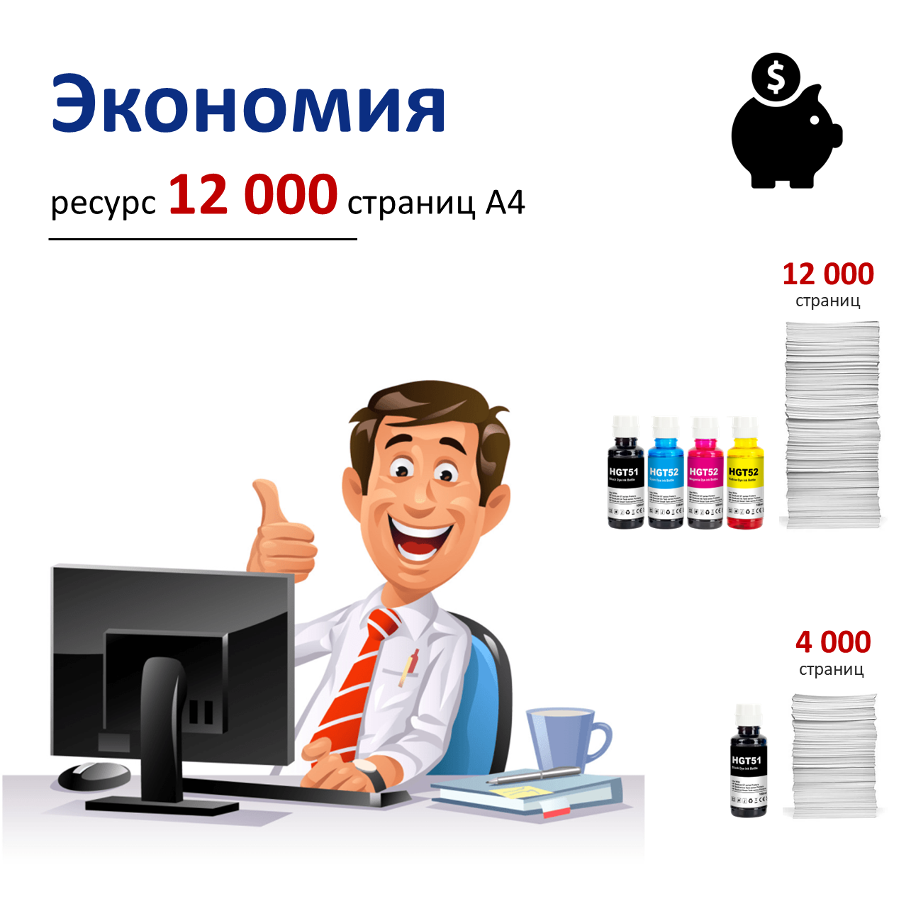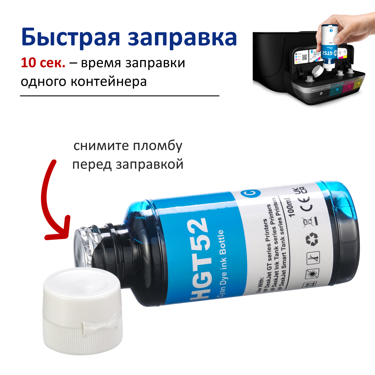 Чернила для принтеров HP GT51 GT52, набор 4х100 мл. интересное: