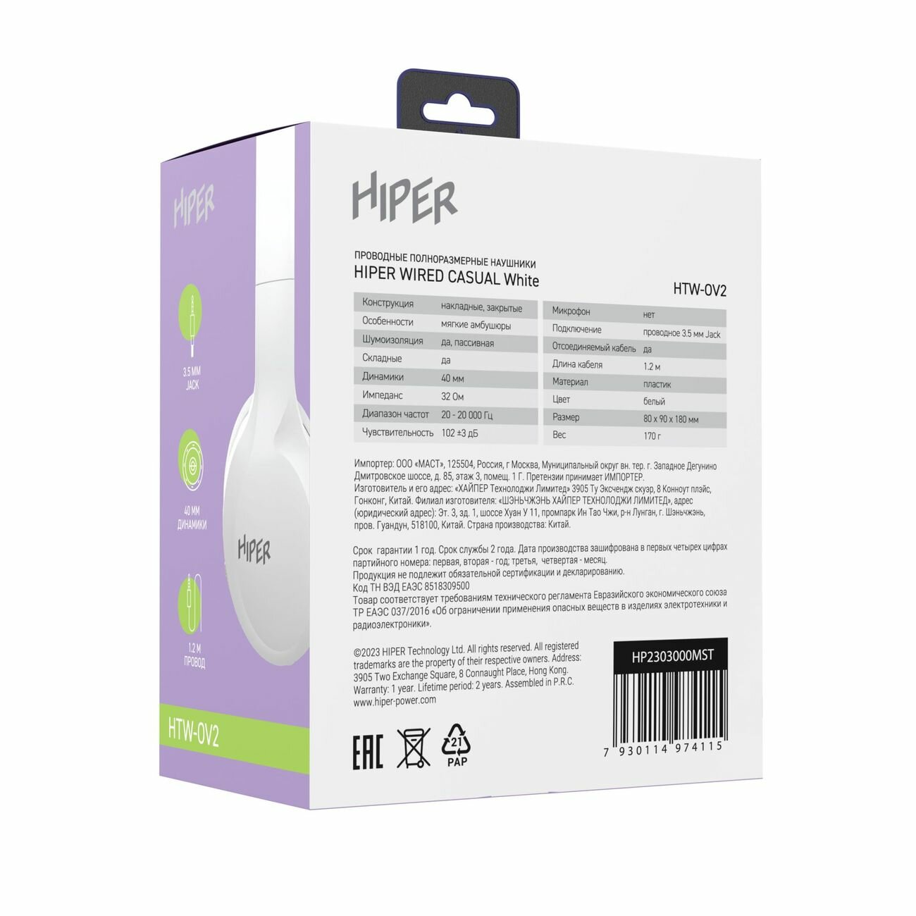 Наушники полноразмерные HIPER HTW-OV2 White интересное: