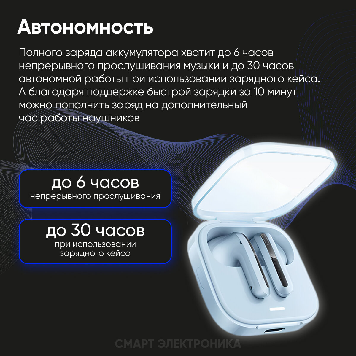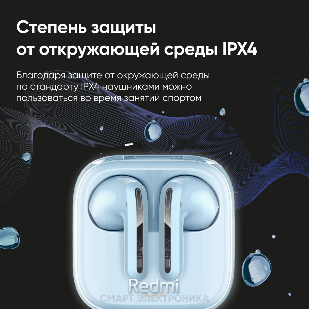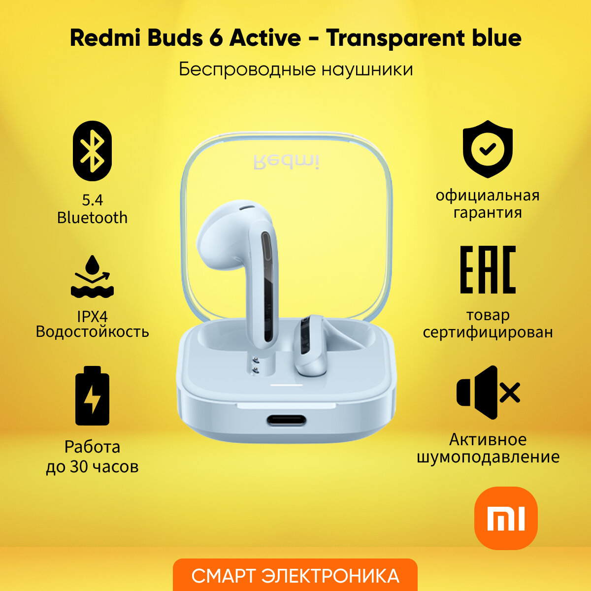 Наушники Xiaomi Redmi Buds 6 Active (Цвет: Transparent Blue)