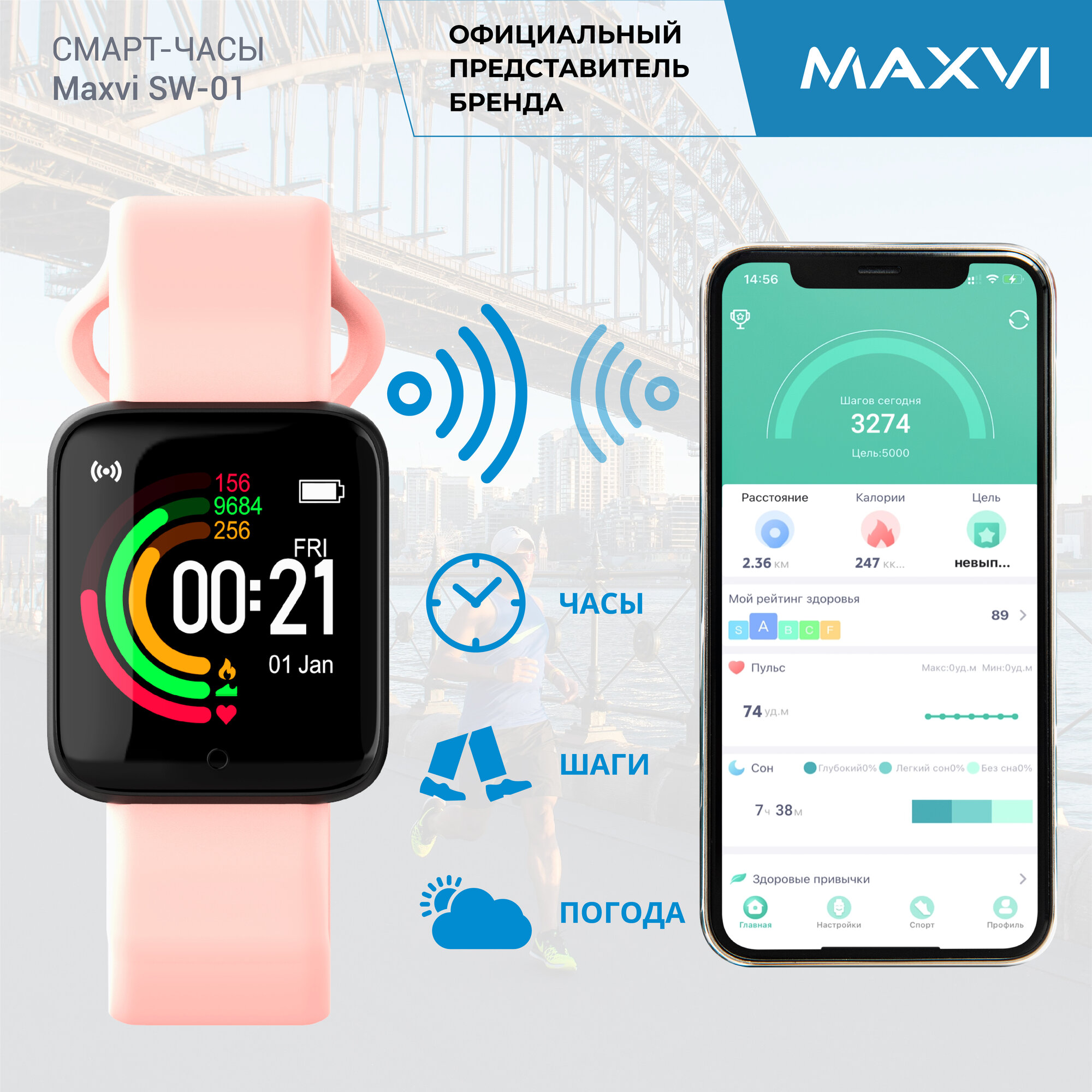 Купить Maxvi Смарт-часы Maxvi SW-01, 1.44", TFT, IP65, 90 мАч, розовые