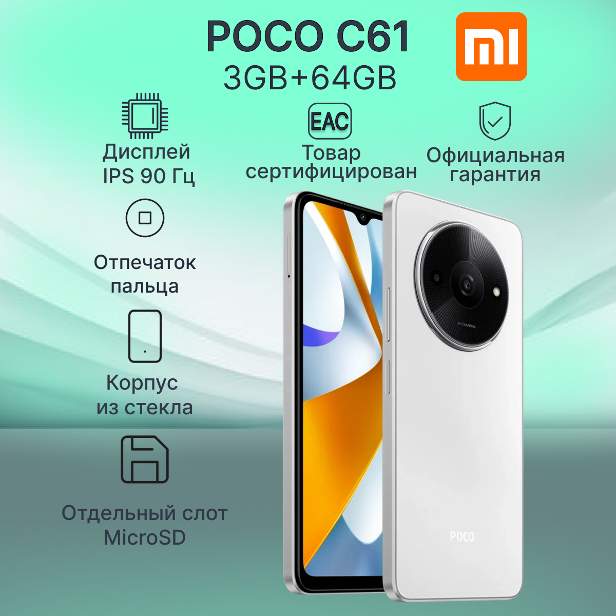 Смартфон Xiaomi POCO C61, 3/64 GB, цвет White, (белый), 6.71"