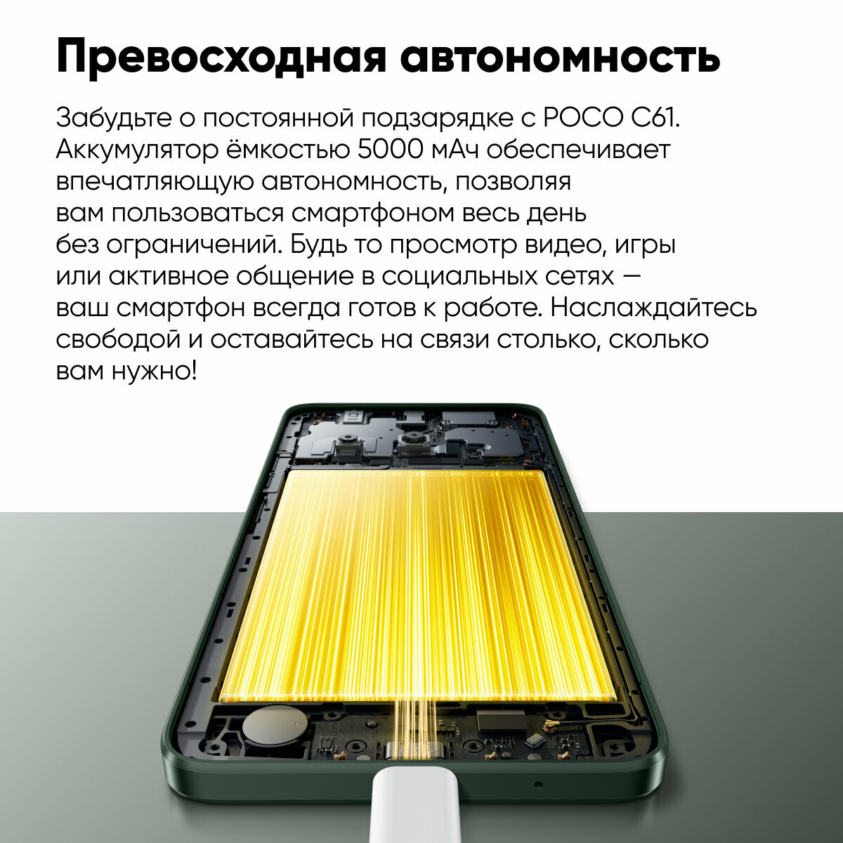 Смартфон POCO C61 4GB+128GB, Green, Dual nano sim, Ru Официальная гарантия.