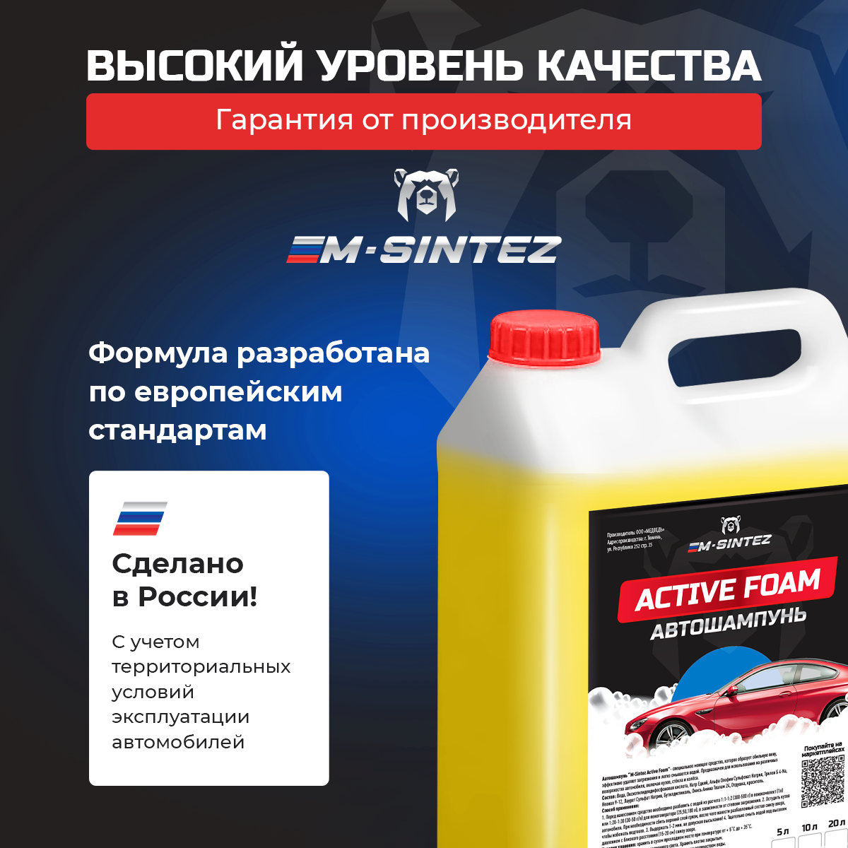 Автошампунь M-SINTEZ Active Foam, концентрат, 5 л, бесконтактная и ручная мойка