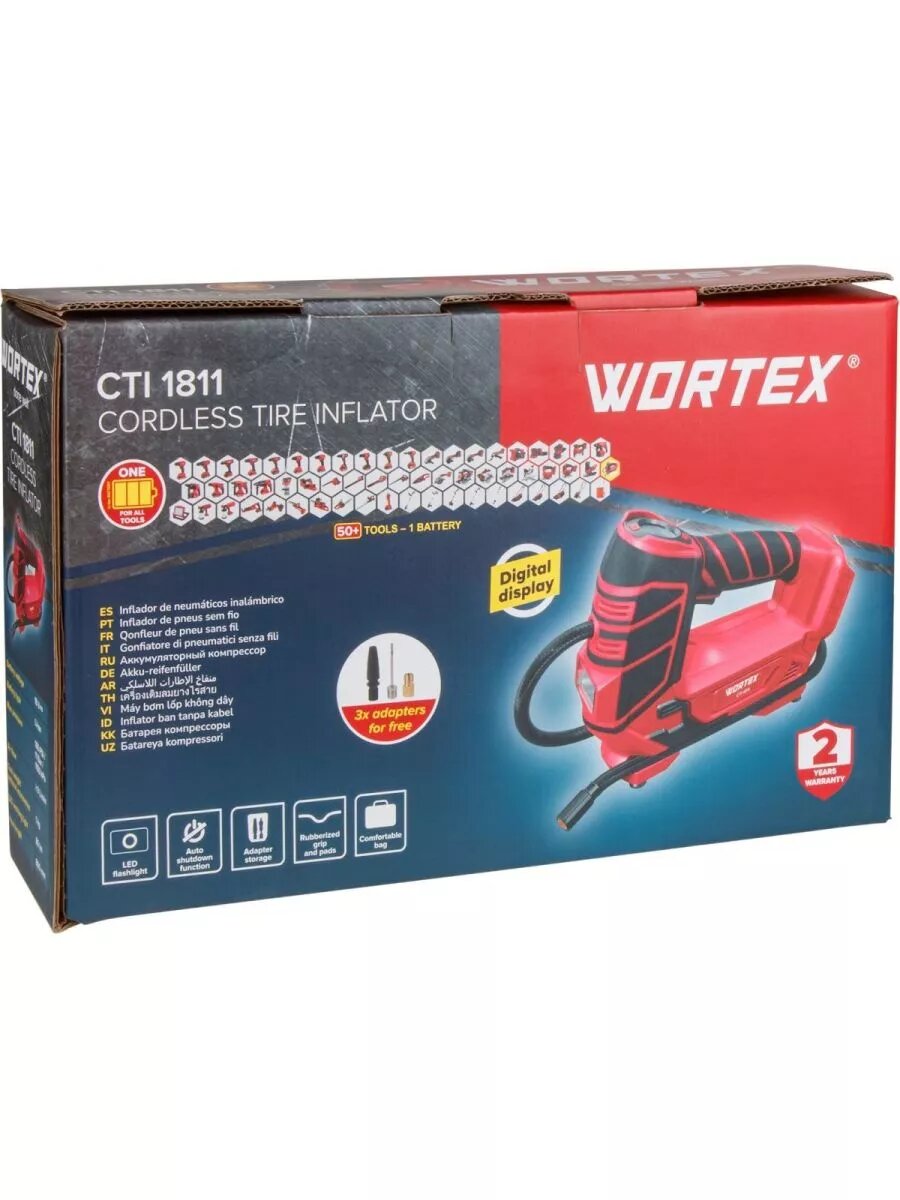 Компрессор автомобильный аккумуляторный WORTEX CTI 1811 с аккумулятором и зарядным устройством (1325446)
