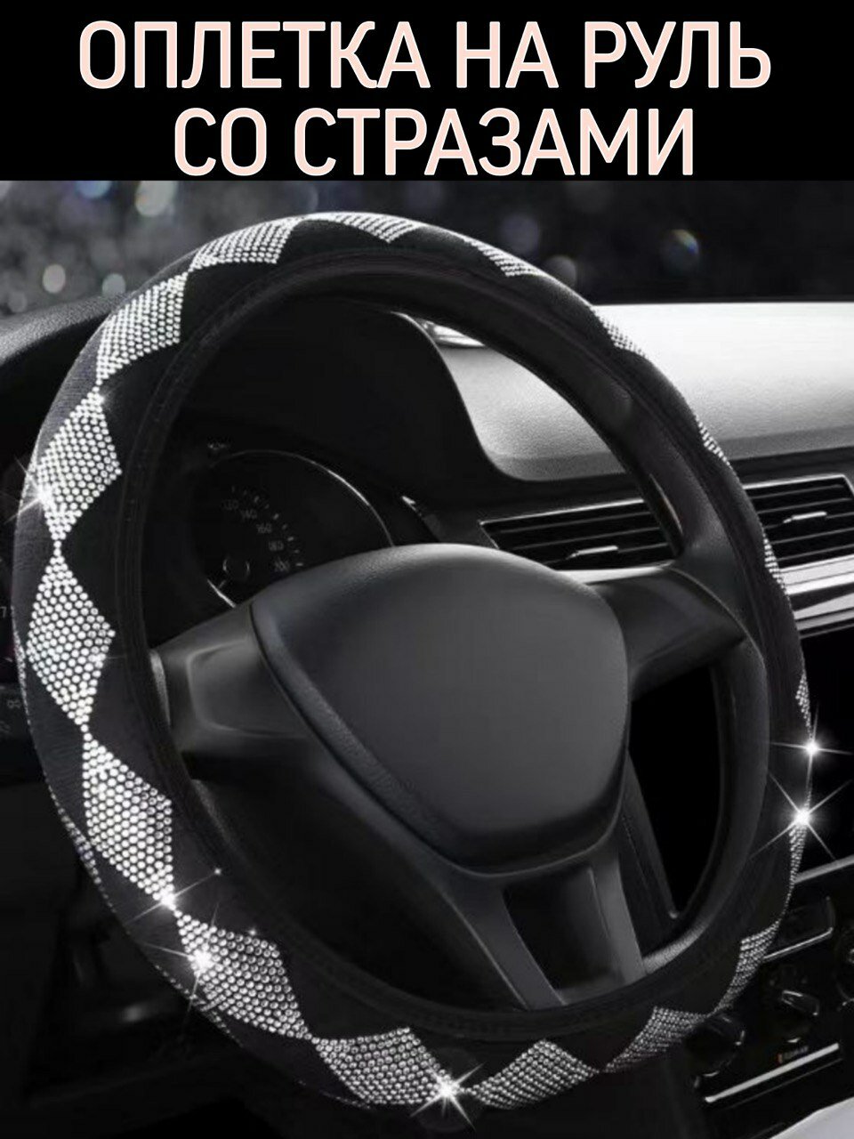 Оплетка руля GREATGOODS, велюр, со стразами, диаметр руля 38см