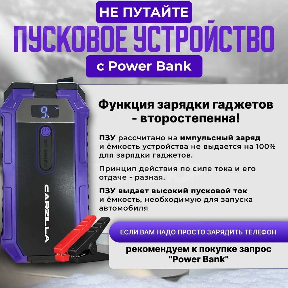 Пусковое зарядное устройство 4000 A / бустер автомобильный с аккумулятором на 26800 мАч и LED-фонарь / Carzilla A6