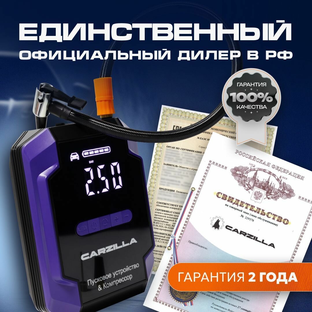 Пусковое устройство для автомобиля Carzilla / 20 000 мАч, пусковой ток 3000А / 4в1: ПЗУ, компрессор, powerbank, LED-фонарь