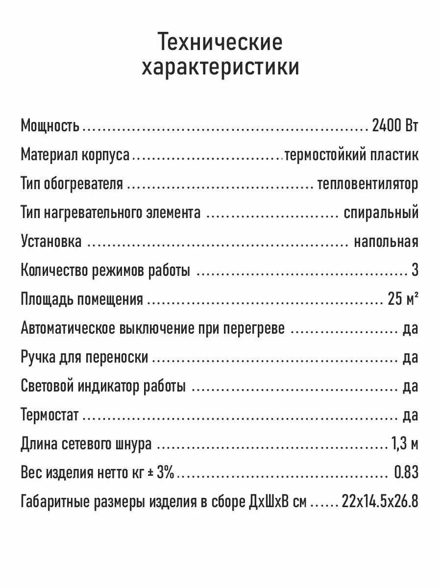 | Тип обогревателя | тепловентилятор |