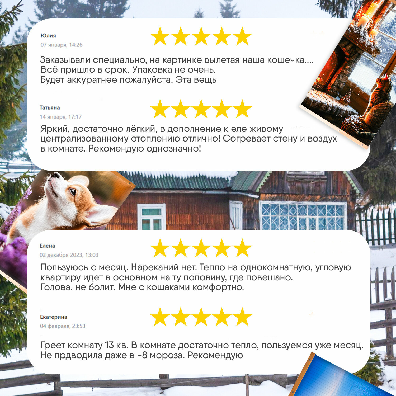 Настенный обогреватель инфракрасный, 150х60 см Камин и кошка Totmart, МАТОВЫЙ, работает с умной розеткой