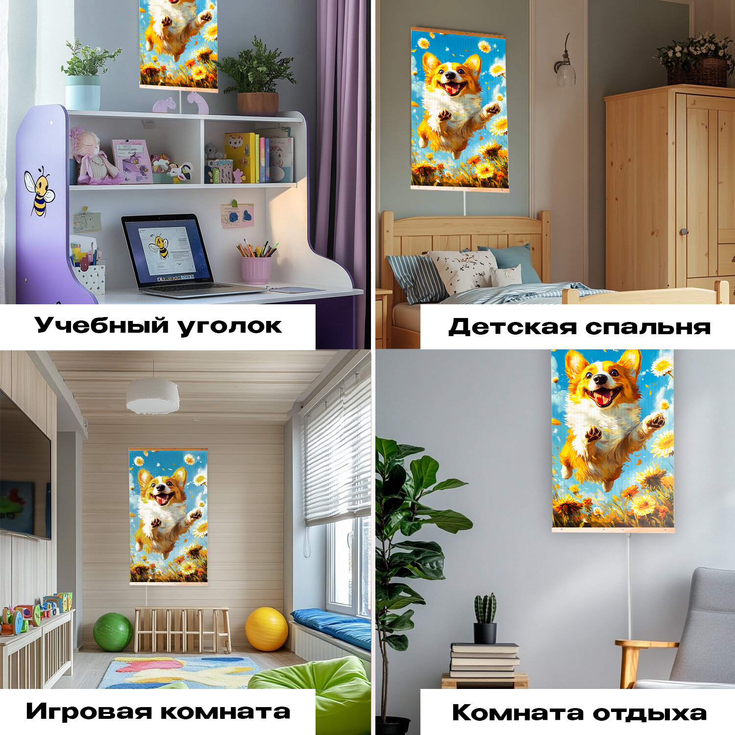 Обогреватель электрический инфракрасный настенный Totmart / Картина интерьерная Корги для дома дачи 400 Вт