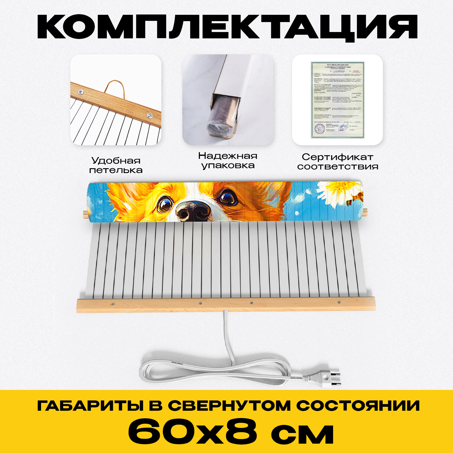 Настенный обогреватель инфракрасный, 150х60 см Корги в ромашках Totmart, работает с умной розеткой