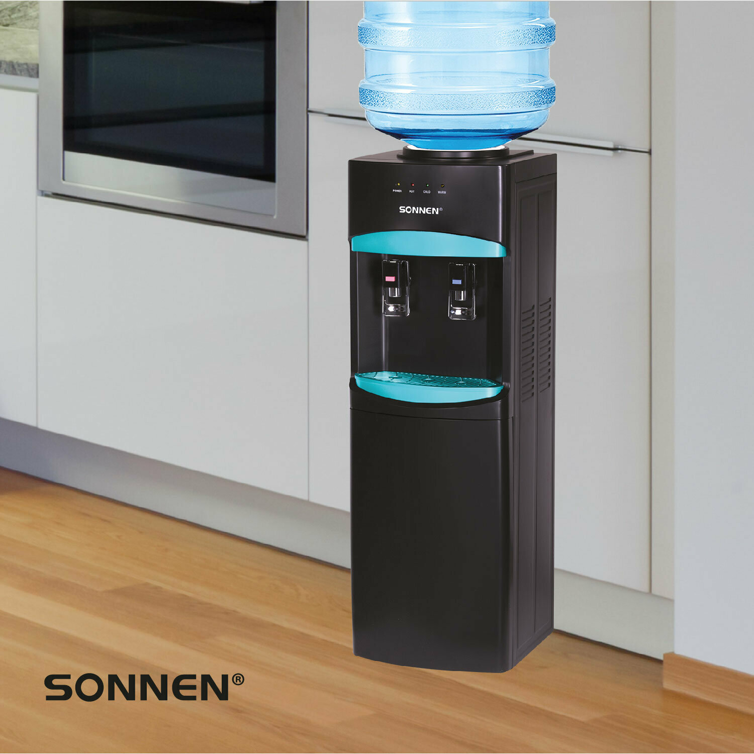 Купить Кулер для воды SONNEN FSC-02W TURBO напольный, турбонагрев/охлаждение компрессорное, шкаф, 2 крана, черный, 456171
