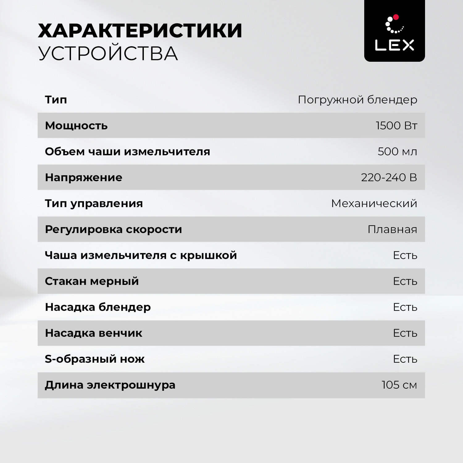 Блендер погружной LEX LX-10011-3. 3-в-1, 1500Вт, регулировка скорости.