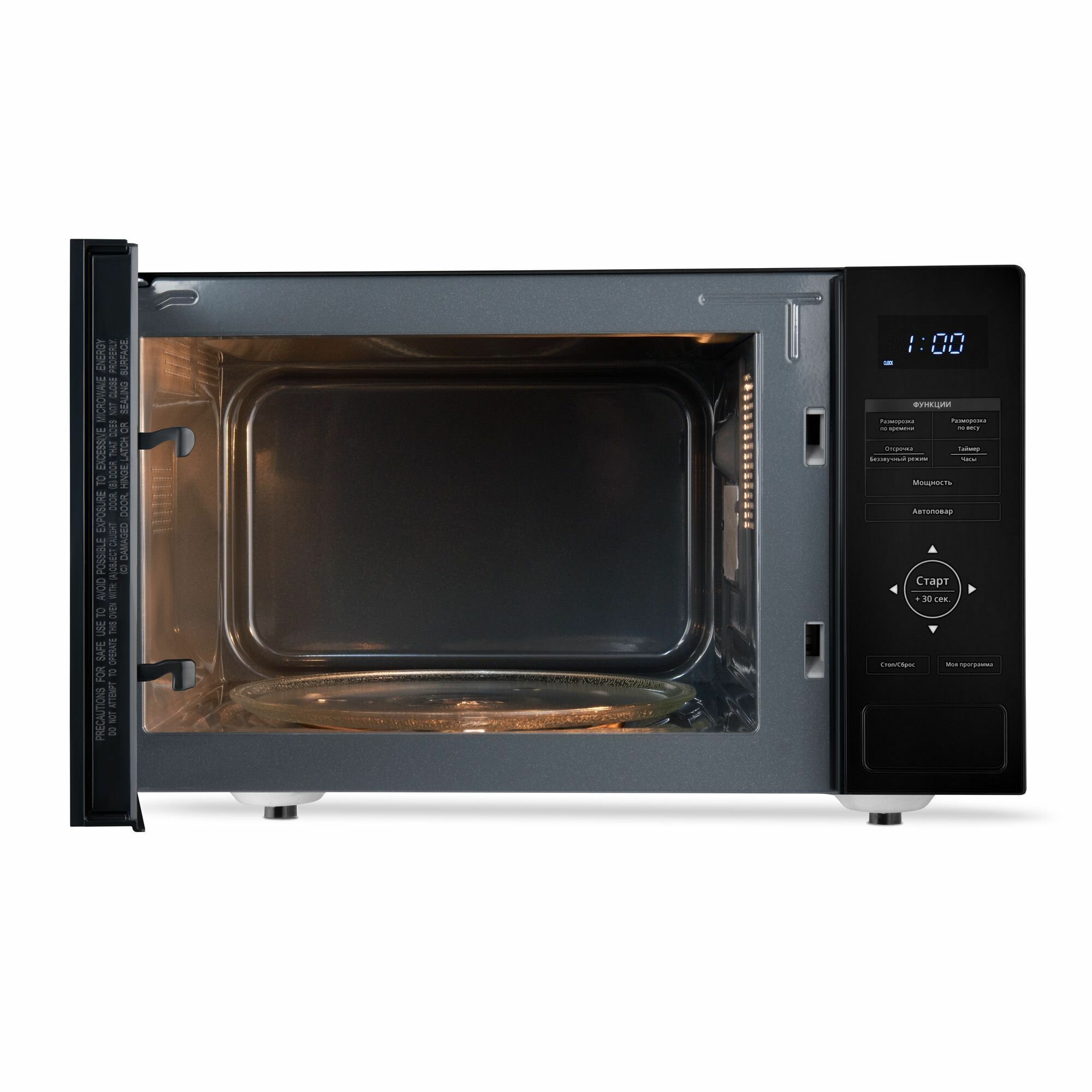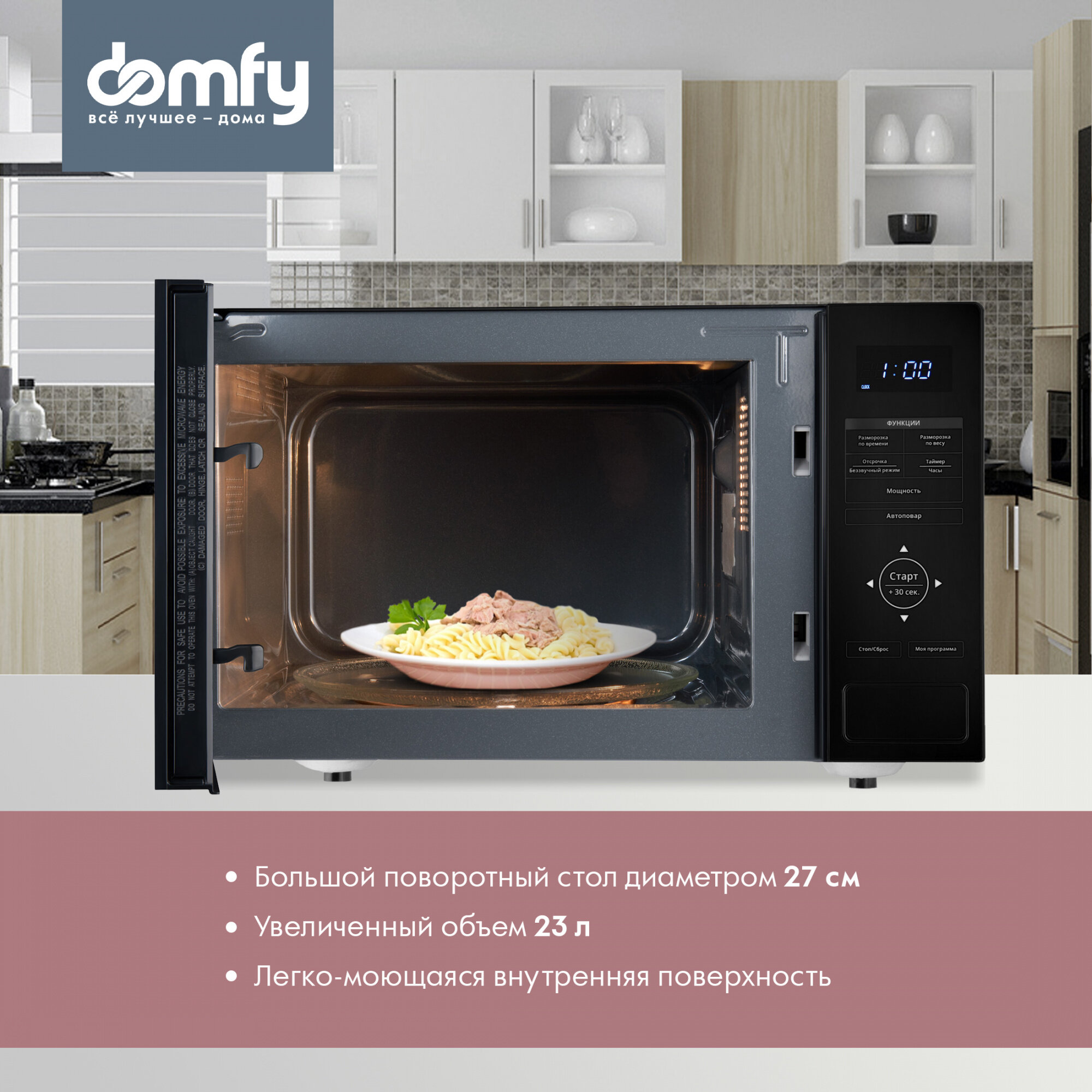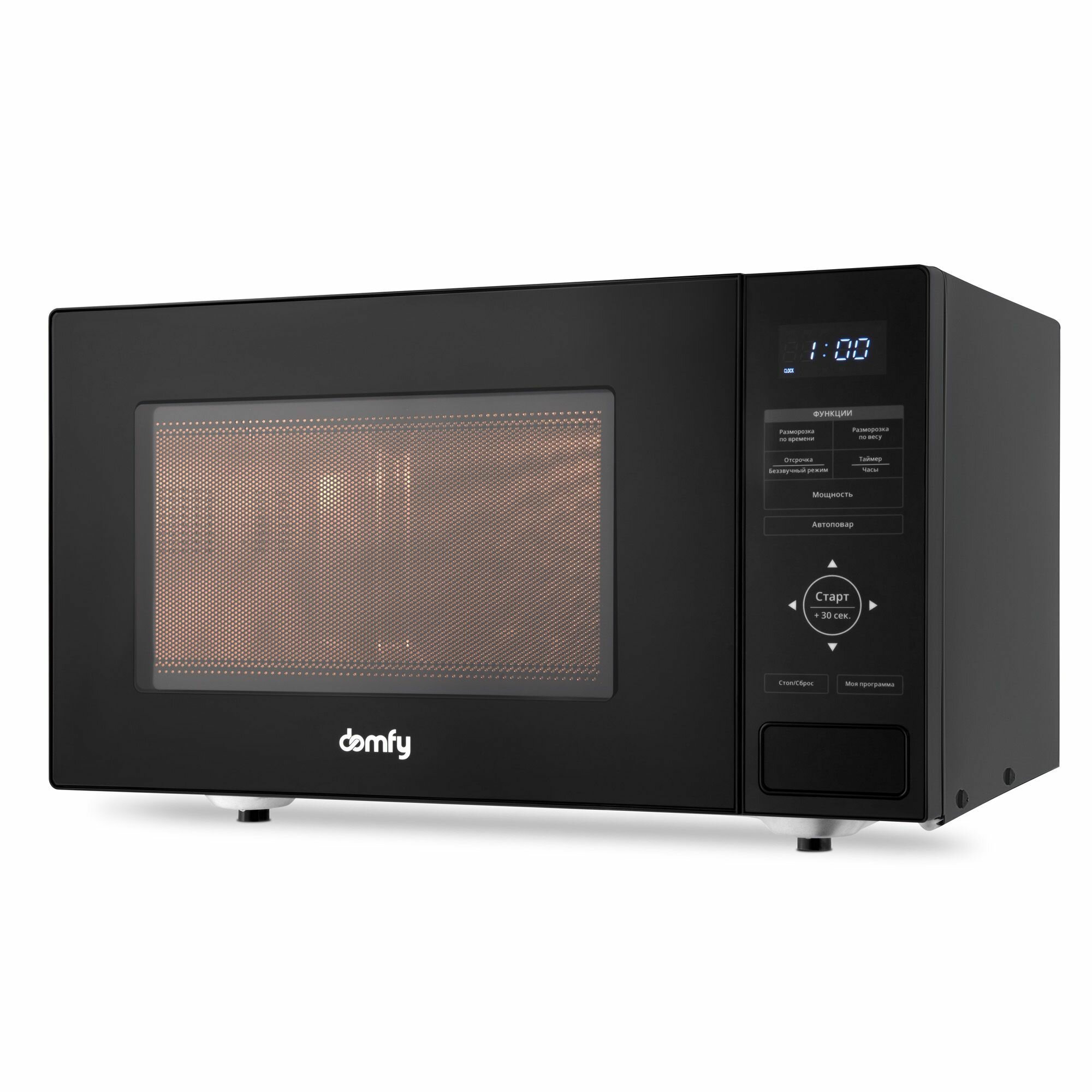 Микроволновая Печь Domfy DSB-MW106, Авто-повар, Объем 23л, поворотный стол 27см, Мощность 900Вт черный