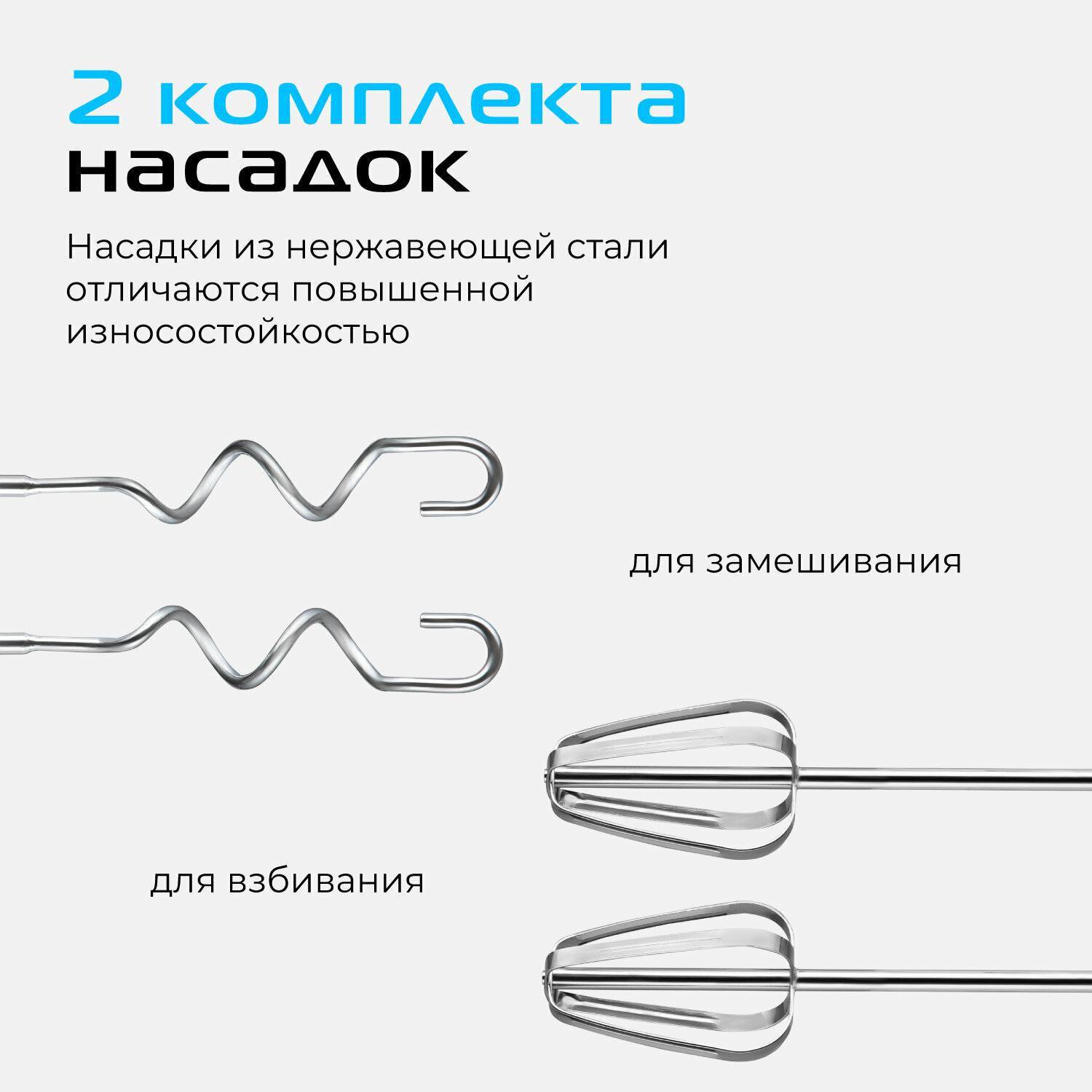 | Насадки | венчик для взбивания / крючки для замешивания теста |