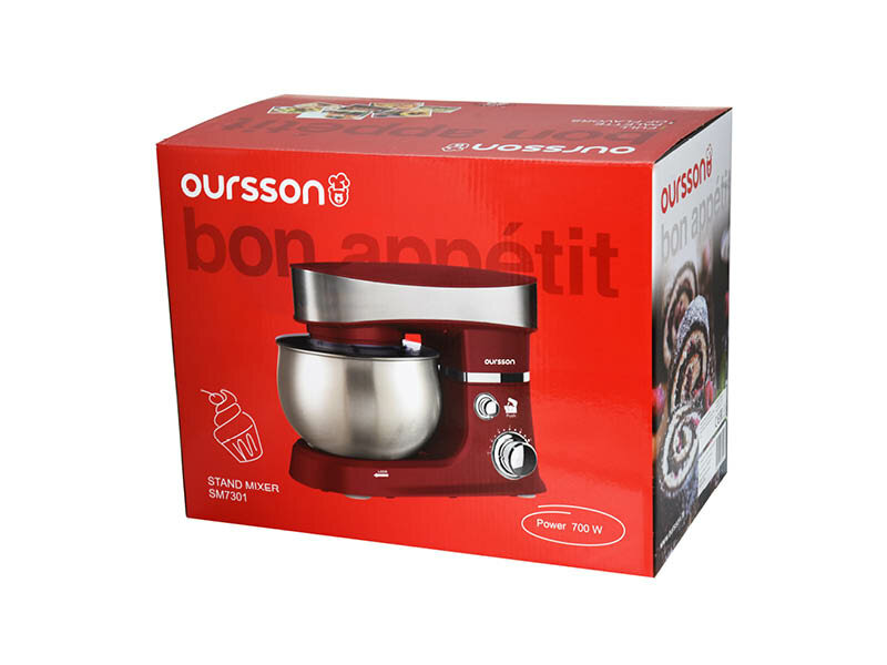 Купить Миксер планетарный Oursson "SM7301/RD", 3л, нержавеющая сталь, 700Вт, красный