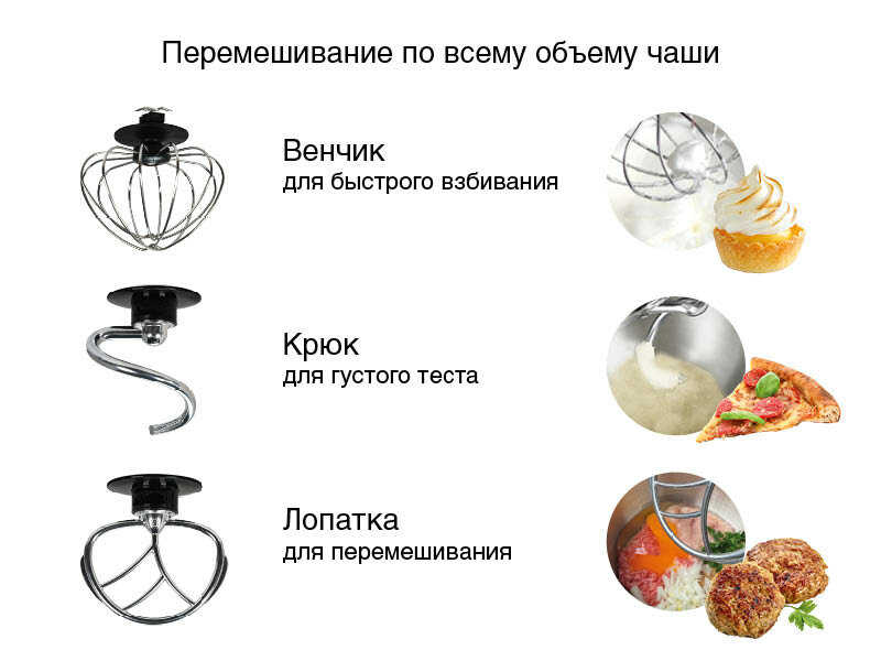 | Насадки | венчик для взбивания / крючки для замешивания теста / лопатка |