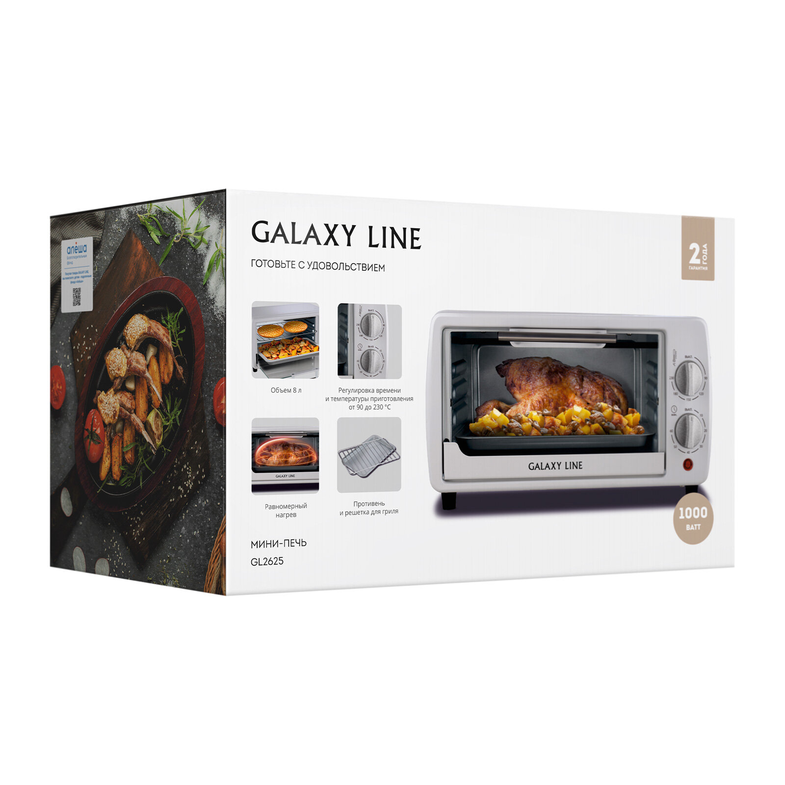 Мини-печь Galaxy Line GL 2625, белый, 8 л, 1000 Вт, таймер на 60 минут, индикатор работы, автоотключение