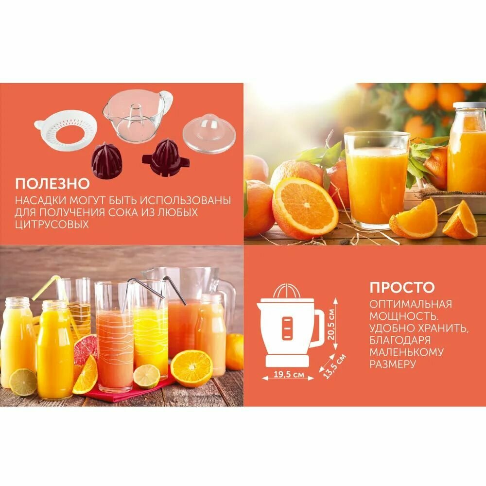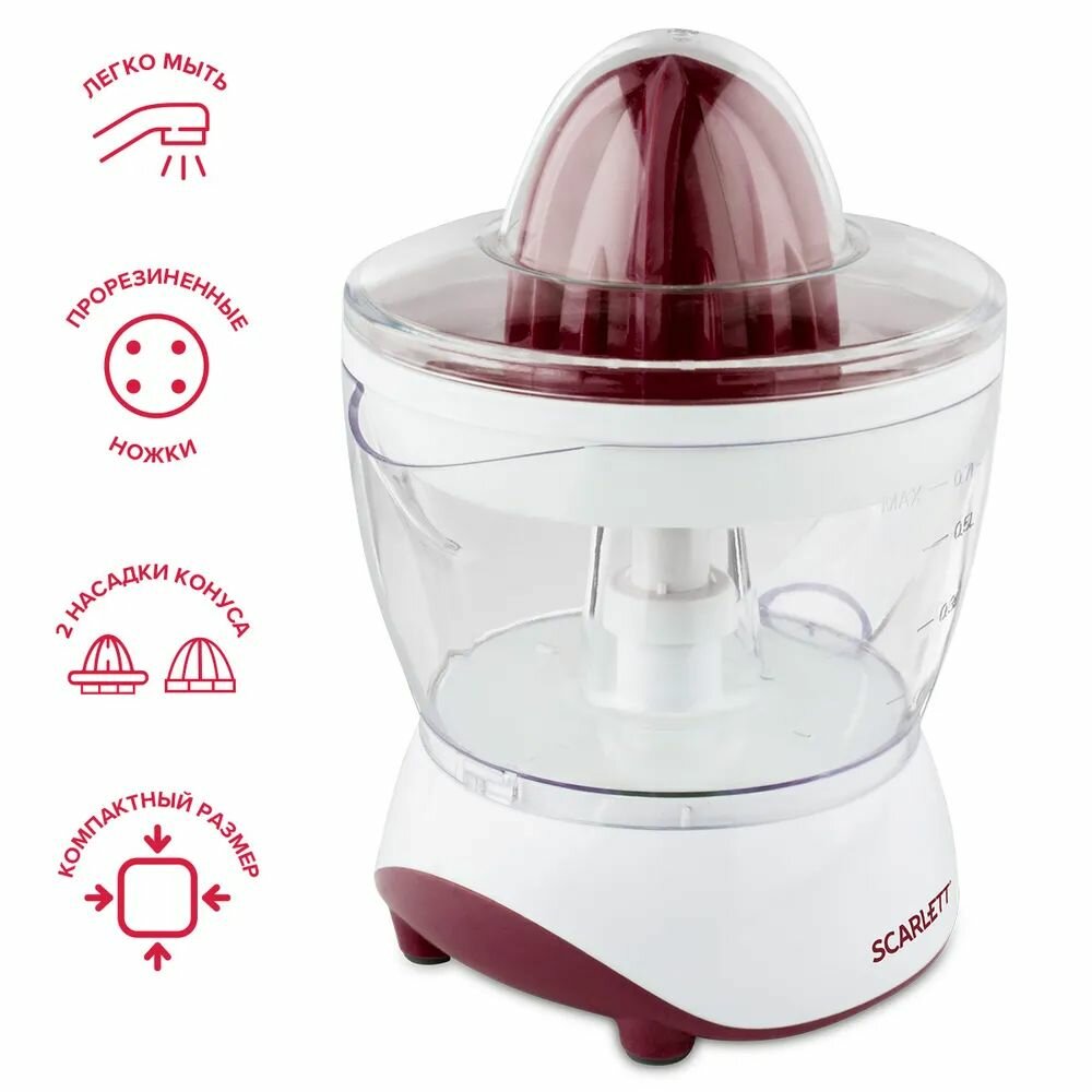 Соковыжималка для цитрусовых SCARLETT SC-JE50C06, 25 Вт, стакан 0,7 л, пластик, белый интересное: