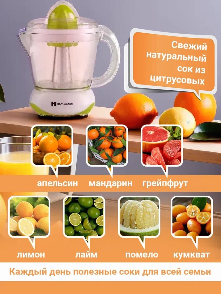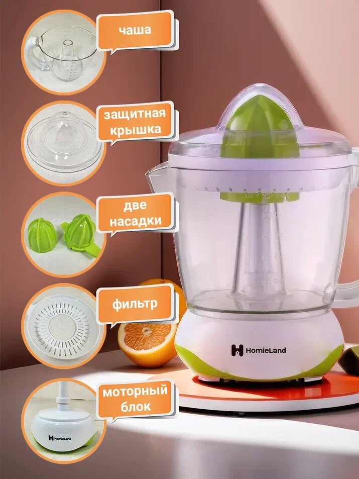 Электрическая соковыжималка HomieLand HL-1000G, с двумя насадками, для цитрусов интересное: