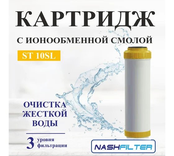 Купить Картридж для умягчения воды ST 10SL NASHFILTER с ионообменной смолой, с возможностью регенерации
