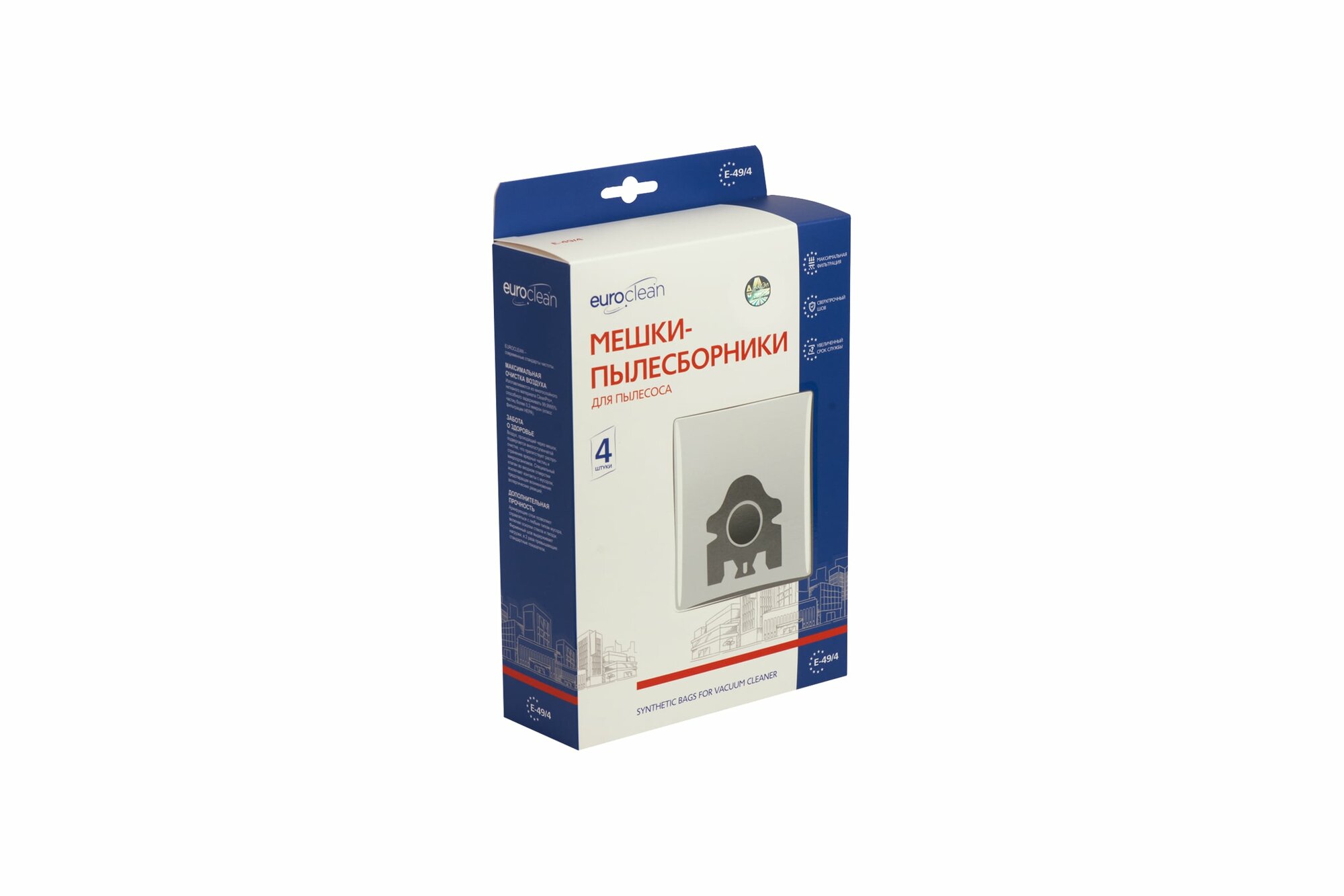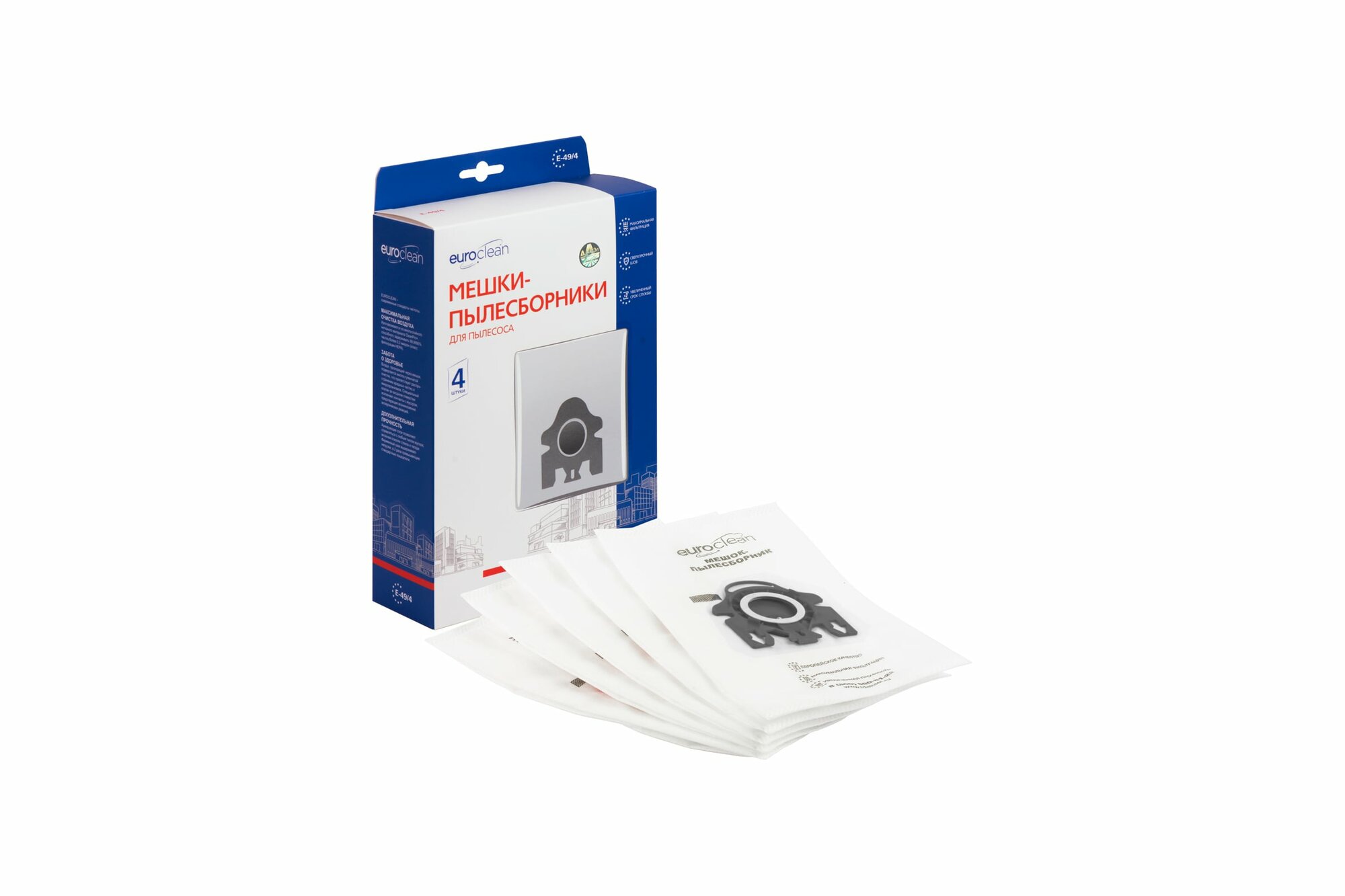 Мешок-пылесборник E-49/4 Euroclean синтетические для пылесоса, 4 шт