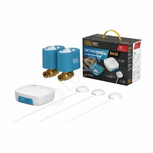 | Подробная комплектация | модуль управления Stahlmann Base (1 шт.), датчик протечки воды Stahlmann 001 (3 шт.) и кран шаровой ½” с электроприводом Stahlmann 12В (2 шт.) |