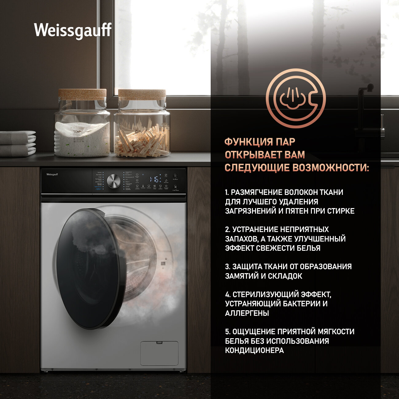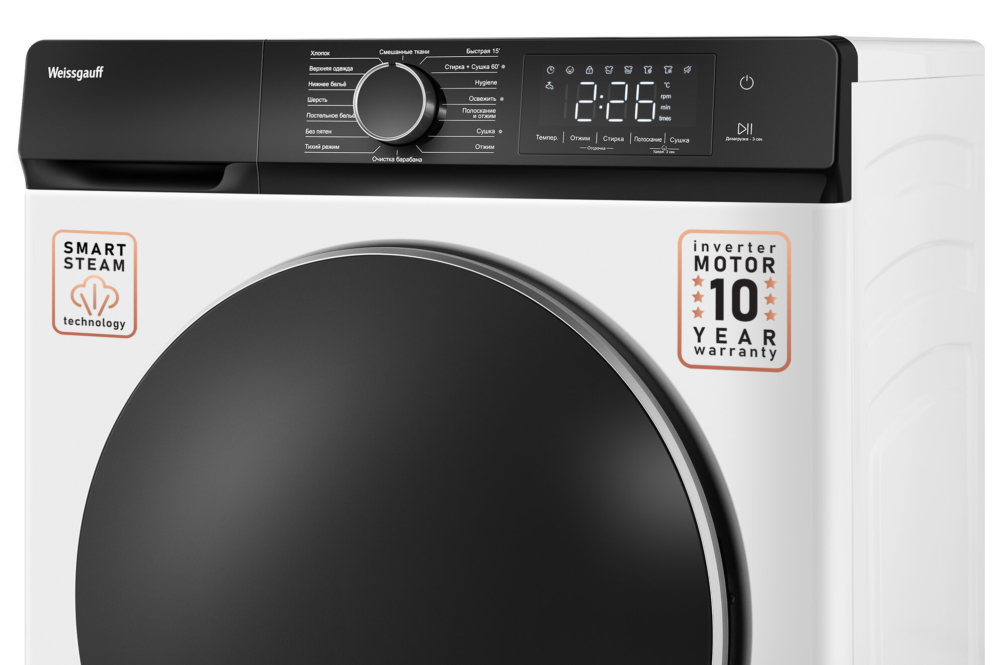Cтиральная машина с сушкой, инвертором и паром Weissgauff WMD 61212 DC Inverter Steam, Загрузка 12 кг, 1200 оборотов интересное: