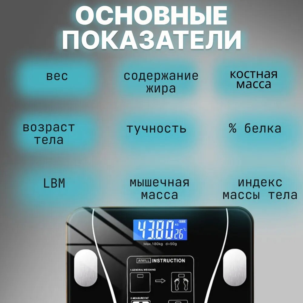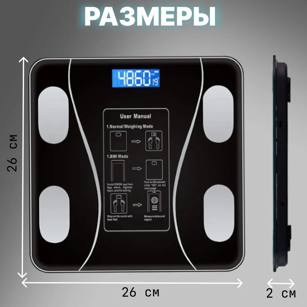 Умные напольные весы, с диагностикой, закаленное стекло, черные, до 180кг интересное: