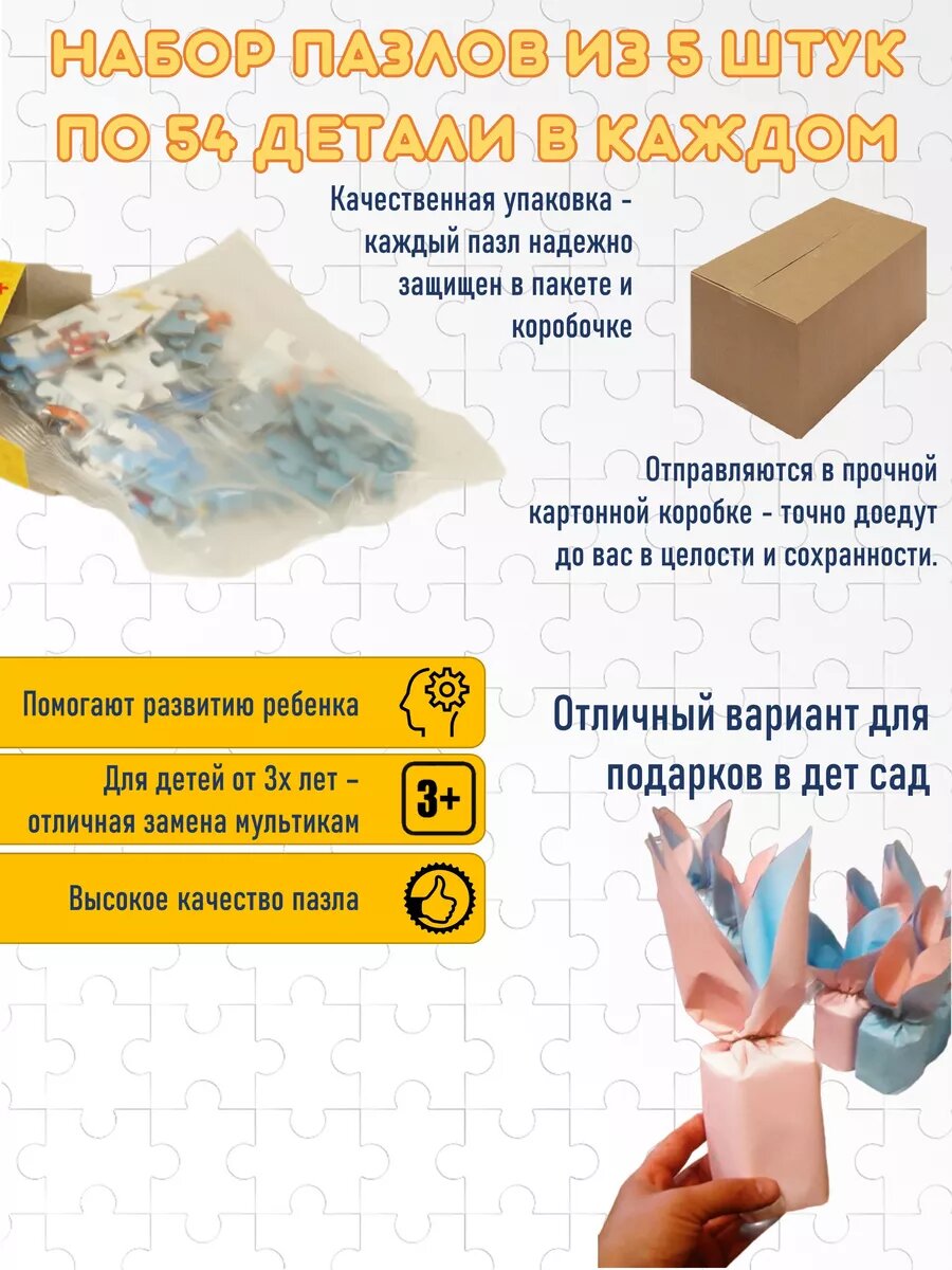 5 шт набор пазлов для детей 54 детали "Любимые мультфильмы"