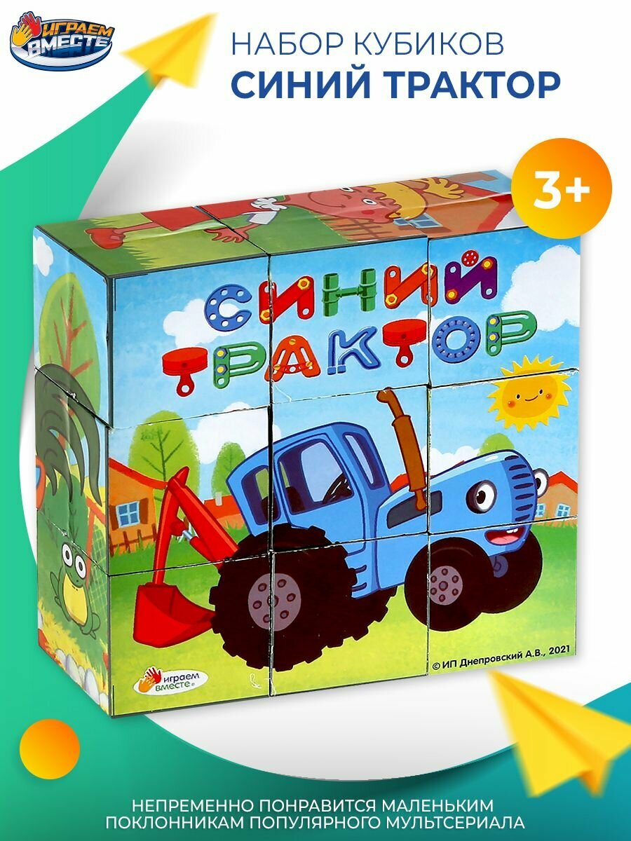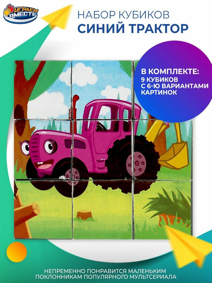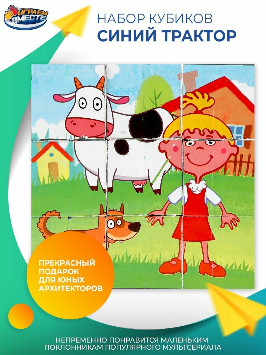 Кубики пластиковые для малышей Синий трактор, Играем вместе, 9 кубиков, яркий дизайн интересное: